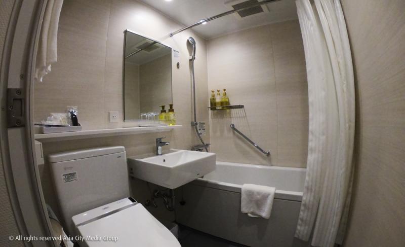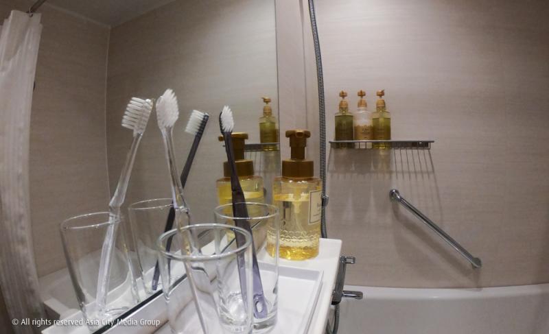 ในส่วนของห้องน้ำก็คือเรียกได้ว่าใหญ่สุดแล้วเท่าที่เคยพักในโรงแรมที่ญี่ปุ่นมา (อันนี้จริง ๆ ไม่ได้โม้) เราชอบที่โรงแรมนี้ใส่ใจเรื่องของใช้ในห้องน้ำ มีการสลับสีแปรงสีฟันเพื่อกันงงสำหรับนักท่องเที่ยวที่มาเป็นคู่ และที่สำคัญคือพี่เขาไม่ประหยัดกระจก! คือดีใจมากกกก ปกติเวลาไปโรงแรมญี่ปุ่นจะขัดใจกับกระจกห้องน้ำเสมอ ไม่รู้จะมินิมัลกันไปไหน แต่ที่นี่คือกระจกบานใหญ่ยาวไป! เพอร์เฟค!