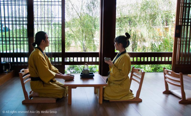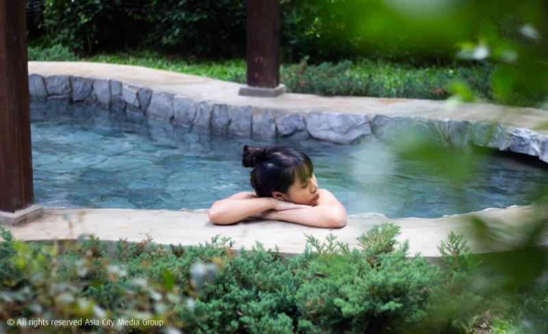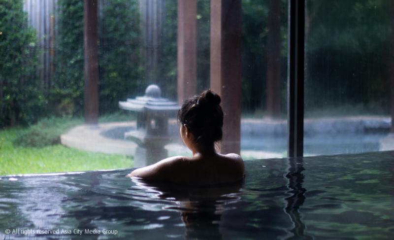 และด้วยความที่เป็นรีสอร์ตไพรเวตรายล้อมด้วยหุบเขาและม่านหมอก การปลดเปลื้องเสื้อผ้าและเดินลงไปแช่บ่อน้ำร้อนเอาต์ดอร์ของที่นี่เลยไม่ได้เป็นเรื่องน่าขัดเขินสำหรับแขกที่มาพัก รวมถึงห้องแช่น้ำร้อนที่แยกชายหญิงและมีให้เลือกแช่มากถึง 4 บ่อ ทั้งบ่อใหญ่ด้านใน บ่อหินด้านนอก และบ่อไม้โอ๊กแบบเดียวกับที่ใช้หมักไวน์ทางยุโรป รวมถึงบ่อน้ำเย็นสำหรับแช่ในขั้นสุดท้ายก่อนออกไปนั่งจิบชาริมสวนชมวิวบ่อปลาคาร์ฟและฝูงเป็ดที่สวนด้านนอก