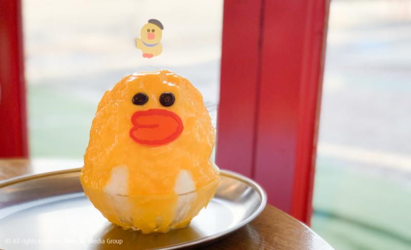 นอกจากนี้ ทางร้านยังมีบิงซูถ้วยพิเศษตามฤดูกาลที่ผลัดเปลี่ยนหมุนเวียนรสชาติใหม่ ๆ อยู่เรื่อย ๆ อีกด้วย อย่างช่วงนี้จะเป็น Sally Apple Mango Bingsu (12,900 วอน หรือประมาณ 335 บาท) บิงซูเจ้านกแซลลี่ ตัวละครดังจาก LINE นั่นเอง หน้าตาก็เป็นเจ้านกเหลืองจริง ๆ ด้วยรสมะม่วง แปะมาด้วยช็อกโกแลตแผ่นที่ทำหน้าตาให้เป็นเจ้าแซลลี่ และด้านในซ่อนชิ้นมะม่วงแอปเปิ้ลเอาไว้ด้วย ขอบอกว่าชื่นใจเวอร์ ส่วนเจ้าแซลลี่ที่ปักมาด้านบน สามารถเก็บกลับบ้านนำไปใช้เป็นที่คั่นหนังสือได้ด้วยนะ