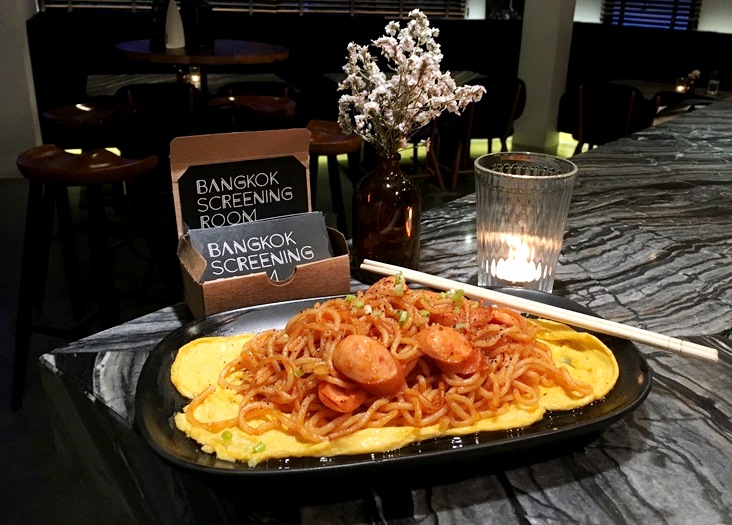ที่ Bangkok Screening Room ยังทำฝันคนชอบหนังอาหารเป็นจริงด้วยการเสิร์ฟเมนูเด็ดจากหนังนั่นคือ Spaghetti Neapolitan (175 บาท) สูตรแบบเดียวกับมาสเตอร์ที่เสิร์ฟมาบนไข่เจียวกะทะร้อน เราแนะนำให้ดูหนังก่อนแล้วค่อยมาชิม เพราะจะเพิ่มอรรถรสให้มากขึ้นอีกเท่าตัว