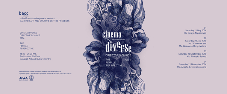 ในปีที่แล้ว ผู้กำกับที่ BACC ชักชวนมาร่วมเทศกาลนั้นเป็นชายล้วน เราจึงดีใจมากที่ปีนี้ถึงคิวผู้กำกับหญิงกันบ้าง แค่ฟังชื่อก็น่าตื่นเต้นแล้ว เพราะมีทั้งโสรยา นาคะสุวรรณ (Final Score 365 วันตามติดชีวิตเด็กเอ็นท์, ราตรีสวัสดิ์), วรรณแวว และแวววรรณ หงษ์วิวัฒน์ (Wish Us Luck ขอให้เราโชคดี), พิมพกา โตวิระ (คืนไร้เงา, มหาสมุทรและสุสาน) และ อโนชา สุวิชากรพงศ์ (เจ้านกกระจอก, ดาวคะนอง) โดยหนังแต่ละเรื่องจะฉายห่างกัน 1 เดือน เรื่องแรกจะเริ่มเดือนนี้ (พ.ค.) และเรื่องถัดๆ ไปจะฉายเดือน ก.ค. ก.ย. และ พ.ย.