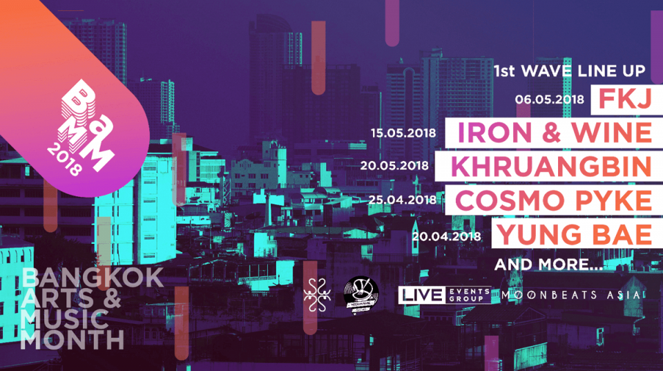 Bangkok Arts & Music Month ซีรีส์งานศิลปะและคอนเสิร์ตที่จะจัดกันยาว ๆ ตั้งแต่ปลายเมษายนถึงพฤษภาคม เหตุผลที่เราตื่นเต้นและดีใจสุดชีวิตคือ ไลน์อัพชุดแรกที่ประกาศออกมาเรียบร้อยแล้ว มันเต็มไปด้วยศิลปินที่เราอยากดูสดมาตลอดชีวิต (อิน) คือ Iron & Wine, YUNG BAE, FKJ, Khruangbin และ Cosmo Pyke
