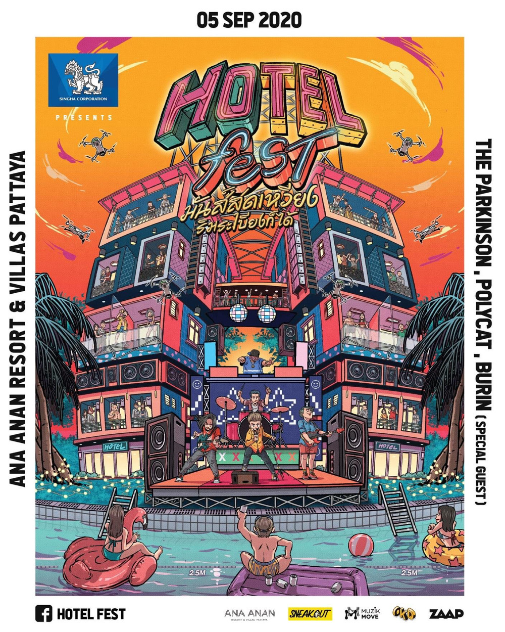 แต่เมื่อเราได้ยินข่าวว่า ในบ้านเรากำลังจะมีเทศกาลดนตรีรูปแบบใหม่ ที่ให้เราไปเอ็นจอยกันได้แบบมีโซเชียลดิสแทนซ์ ใจคนคอนฯ อย่างเราก็ชุ่มชื้นขึ้นมาทันที โดยเทศกาลที่ว่านี่ก็คือ Hotel Fest คอนเสิร์ตมิติใหม่ที่ให้เราไปชมคอนเสิร์ตกันตรงระเบียงห้องพักในโรงแรม!