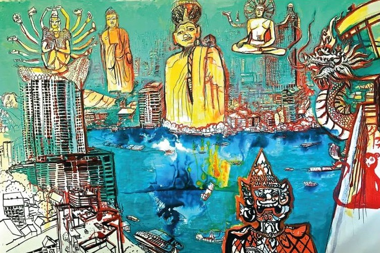 นิทรรศการภาพวาดของ Virginie Broquet ศิลปินสาวชาวฝรั่งเศสที่เดินทางบันทึกภาพวิถีชีวิตของผู้คนในประเทศไทยและทวีปเอเชียลงบนผืนผ้าใบผสมผสานกับการใช้เทคนิคมิกซ์มีเดีย