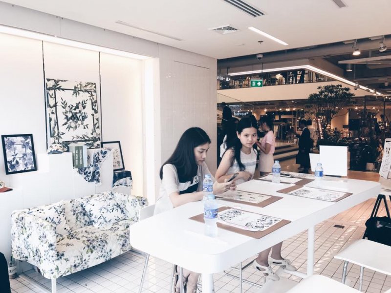 นอกจากนี้ก็จะมีทั้ง exhibition ที่จัดแสดงผลงานจากศิลปินและดีไซน์เนอร์ ส่วนอีกโซนคือโซนสอนเวิร์คช็อปโดย Pinn Creative Space ซึ่งมีจัดคลาสสอนเวิร์คช็อปในวันธรรมดาทุกวันแบ่งคอร์สประจำสัปดาห์นั้นๆ