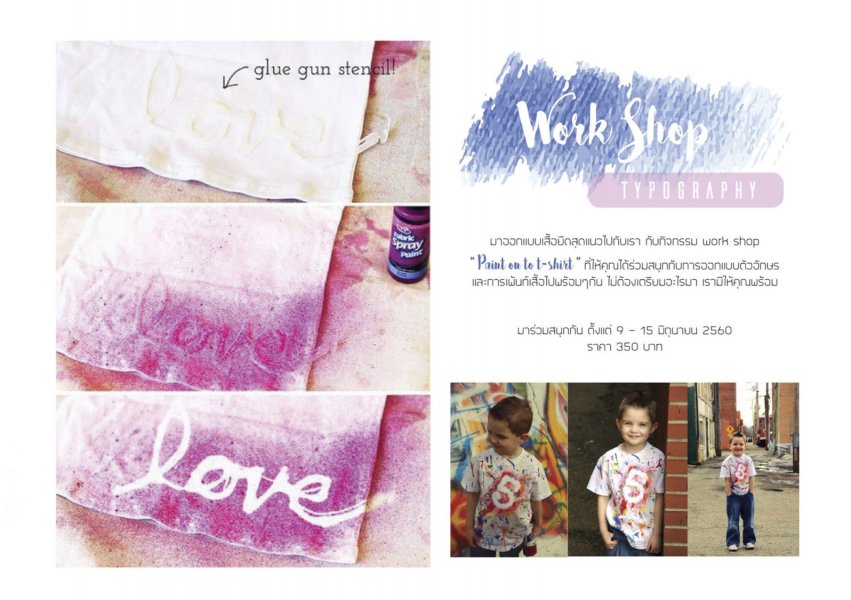 ชวนคุณมาออกแบบลายเสื้อยืดเก๋ๆ ด้วยคอร์สเวิร์คช็อป "Paint on to t-shirt" ที่แค่มาแต่ตัว ไม่ต้องเอาอุปกรณ์อะไรมาก็ร่วมกิจกรรมได้ แถมเสื้อที่เราได้ยังเป็นชิ้นที่มีตัวเดียวในโลกอีกด้วยนะ