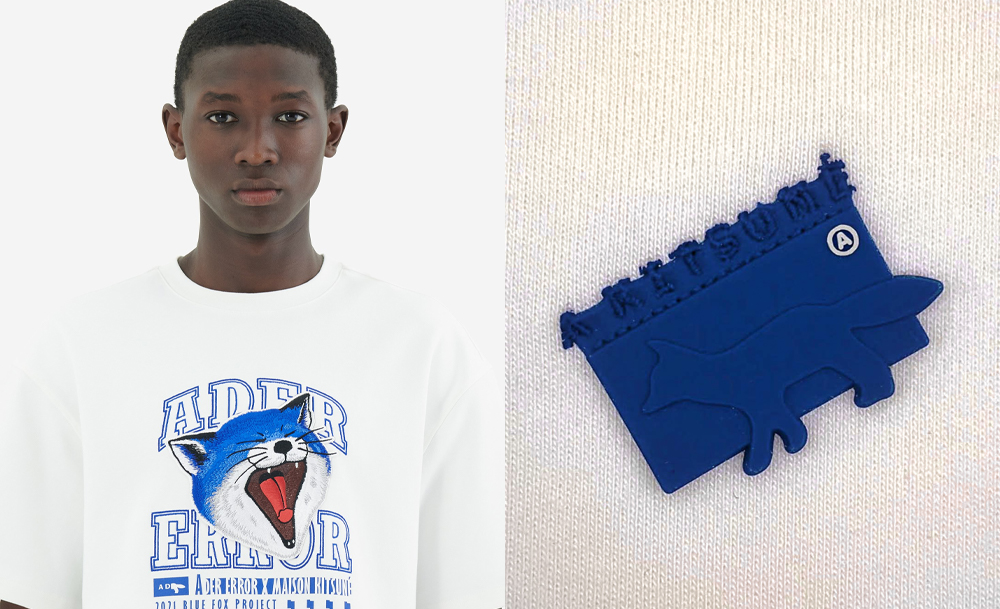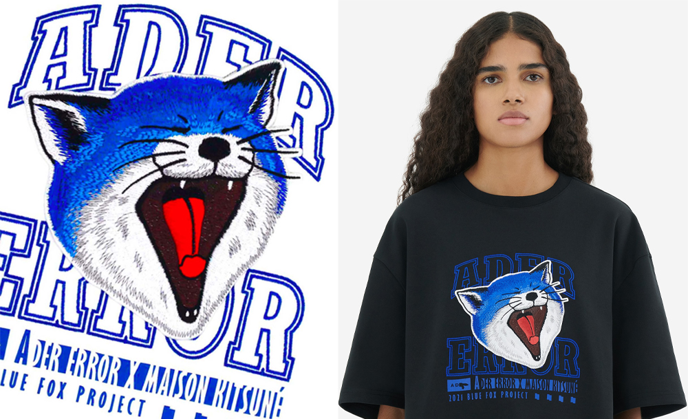 ในส่วนของคอลเลกชันจิ้งจอกเดียวดายสีน้ำเงินที่เกิดจากการจับมือกันระหว่าง Ader Error และ Maison Kitsuné นี้ก็เป็นการต่อยอดจากคอนเซปต์ The Bluest Fox Collection จากคอลแลบฯ ปีที่แล้ว ที่พาเจ้าจิ้งจอกสีน้ำเงินกลับมาพบกับสาวกของแบรนด์อีกครั้งในรูปโฉมที่แตกต่างออกไป โดยคราวนี้เจ้าจิ้งจอกน้ำเงินจะสะท้อนความเท่และ 'พังก์' มากขึ้น ลบภาพจำเจ้าจิ้งจอกมุ้งมิ้งไปได้เลย เพราะกลับมาคราวนี้พี่เขาไม่อ่อนโยนเหมือนเดิมแล้ว!