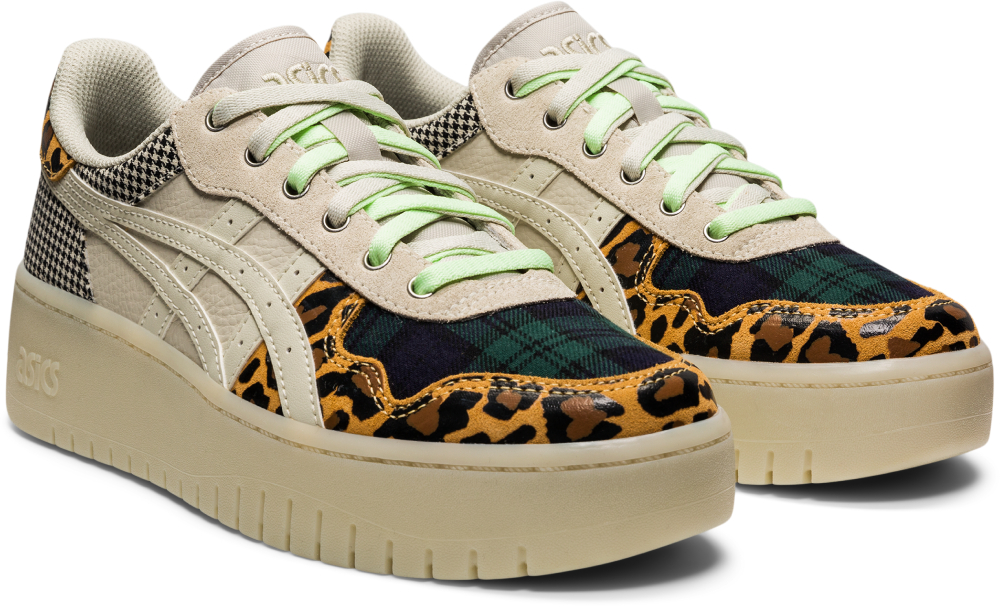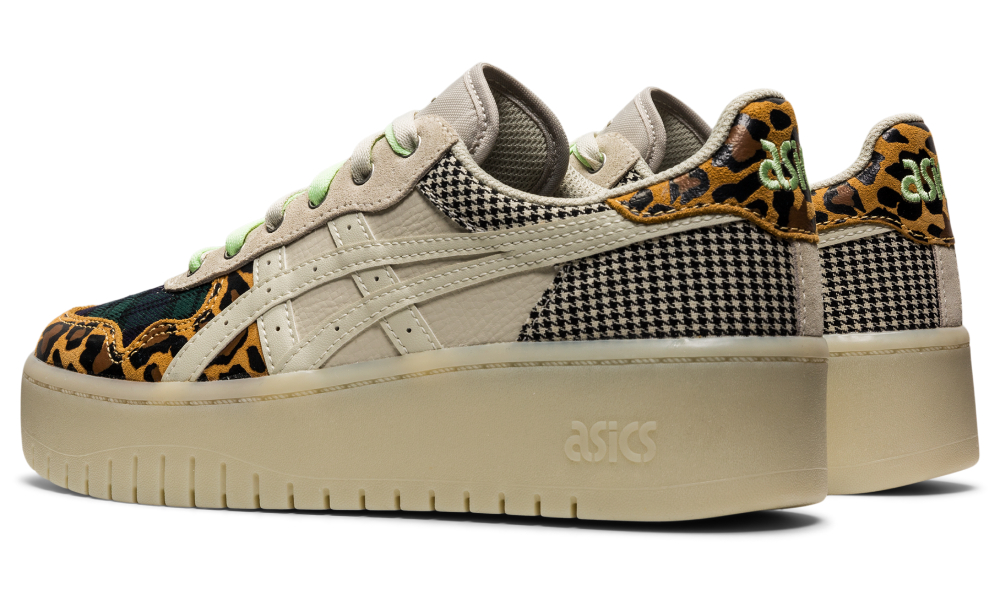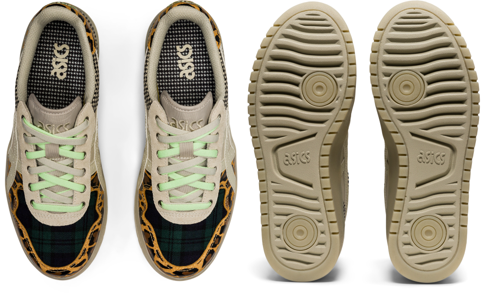 ส่วนอีกคู่เป็นสีเบจที่เขาดีไซน์มาให้ไม่ธรรมดา จากที่หลายคนอาจจะคิดไปว่าเฉดสีนี้เอามาทำให้สนุกไม่ค่อยได้ แต่ความโดดเด่นที่เขาเอามาผสมกับสีพื้น ๆ ได้อย่างลงตัวก็คือแพตเทิร์นลายเสือดาวและลายตาราง ซึ่งถือเป็นลายพรินต์ที่ยากอยู่พอตัว แต่พอมาเป็นดีเทลของ JAPAN S PF แล้ว กลับป็อปโดนใจขึ้นมาอย่างน่าประหลาด
