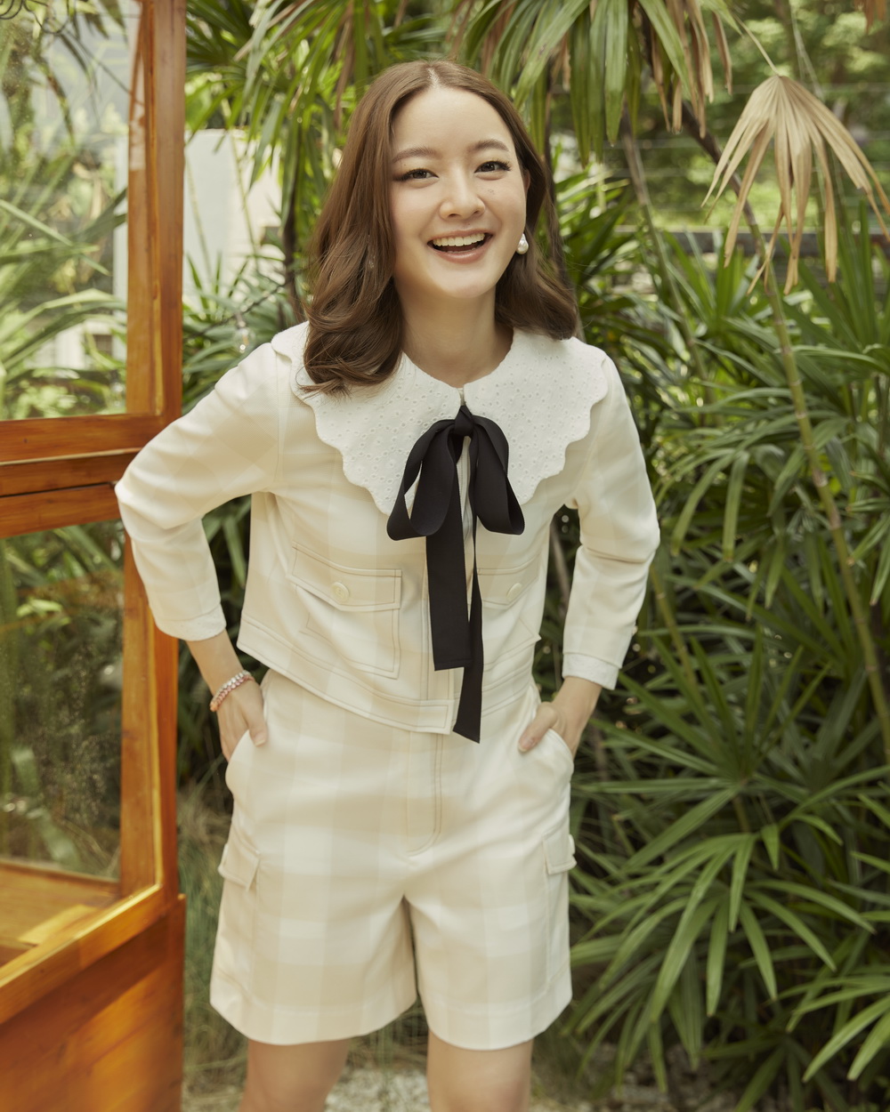 ที่ชอบมาก ๆ คือเราจะได้เห็นคาแรกเตอร์ของน้องอิ้งค์ที่ทั้งสดใสและทะมัดทะแมงผ่านคีย์พีซที่น่าสนใจ อาทิ จัมป์สูทขายาว กางเกงขาสั้นทรงเบอร์มิวด้า และเดรสทรงเอไลน์ ที่เป็นมากกว่าแฟชั่นเซตประจำวัน เพราะสามารถใส่ออกงานอิเวนต์หรือไปงานที่เป็นทางการขึ้นกว่านั้นได้แบบสบาย ๆ