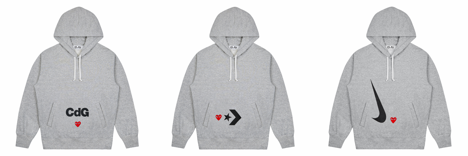 บอกเลยว่าหัวใจสายสตรีตของเราเต้นตุ๊ม ๆ ต่อม ๆ ไม่เป็นจังหวะจริง ๆ ตอนที่รู้ว่า Comme des Garçons PLAY เขาเปิดตัวคอลแลบอเรชันพิเศษ PLAY TOGETHER ร่วมกับแบรนด์พันธมิตรอย่าง Converse และ Nike โดยออกมาในรูปของการรวมโลโก้ที่แสนจะไอคอนิก เห็นเมื่อไหร่ รู้เมื่อนั้น ว่าเป็นสัญลักษณ์ของอะไร มารวมกันในไอเทมเดียวแบบที่คนใส่ไม่ต้องห่วงว่าจะรักพี่เสียดายน้อง