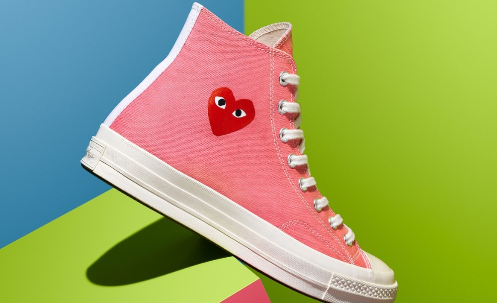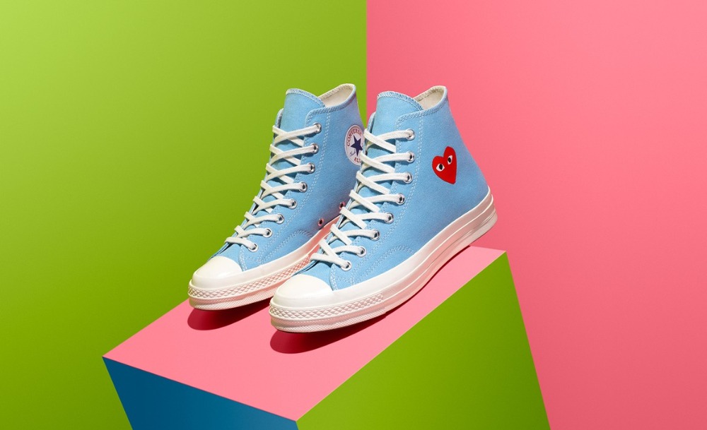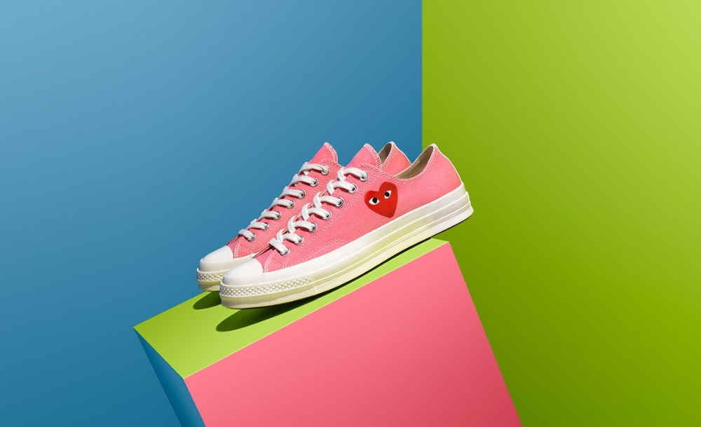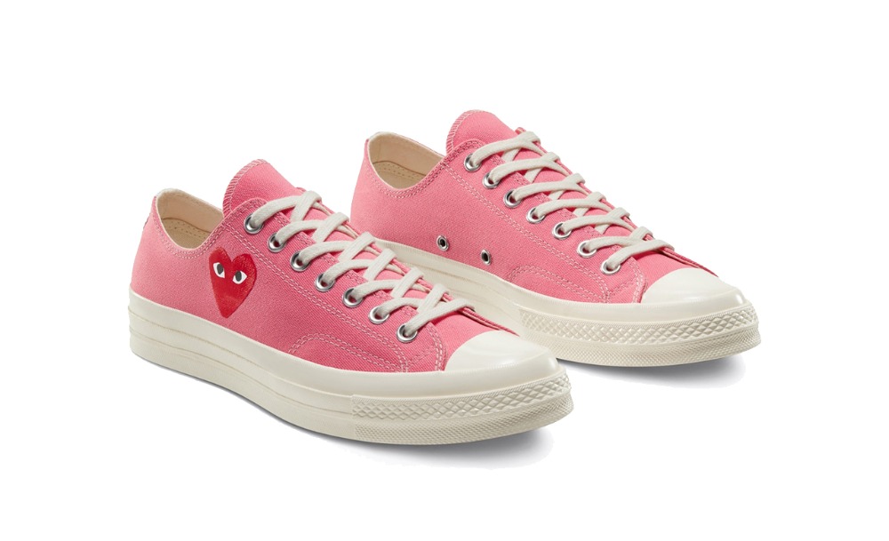 ถึง Converse x PLAY COMME des GARCONS Chuck 70 รุ่นนี้จะแตกต่างจากรุ่น ก่อน ๆ ในเรื่องของความสดใสพาสเทล แต่ทางผู้ออกแบบเขากลับรักษาโลโก้รูปหัวใจสีแดงให้ดูเรียบง่ายคลาสสิกเหมือนรุ่นแรก ๆ แบบว่าอวดสัญลักษณ์ของแบรนด์ให้เห็นชัด ๆ ไปเลย ต่างจากคอลฯ รุ่นก่อนหน้านี้ที่เขาเล่นกับการใช้โลโก้รูปหัวใจในแบบต่าง ๆ ทั้งที่เป็นลายพรินต์แพตเทิร์น ขยายใหญ่ หรือทำเป็นลายจุด