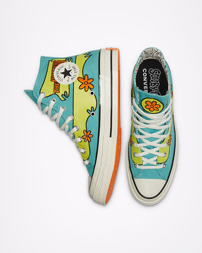 เริ่มจากโมเดล Chuck 70 ที่โดดเด่นมาแต่ไกลจนคิดว่าน่าจะขายหมดเป็นโมเดลแรก แถมยังทำให้จอรับสีในลูกตาเราทำงานอย่างหนัก ด้วยลวดลายสีฟ้า-เหลืองจี๊ดจ๊าดแสบสัน พร้อมพื้นรองเท้าสีส้มปรี๊ดของเจ้าสนีกเกอร์รุ่นพิเศษ Converse x Scooby-Doo! The Mystery Machine ที่ได้แรงบันดาลใจมาจาก The Mystery Machine รถตู้คู่บุญยี่ห้อ Ford E200 Econoline รุ่นปี 1972 ของทีมงานบริษัทไขปริศนา The Whole Mystery Inc. สุดเพี้ยนทีมนี้นั่นเอง