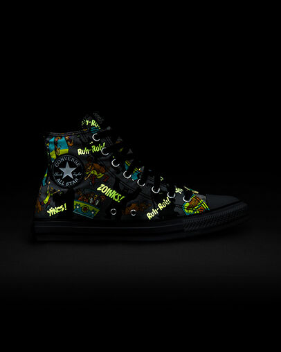 นอกจากนั้นยังมีโมเดลทรง Chuck Taylor All Star ยอดฮิตทั้งแบบหุ้มข้อและแบบข้อสั้นให้เหล่าแฟนคลับทีม Scooby-Doo ได้เลือกชอปกันอีกเป็นกระบุง ที่เข้าตาสุดน่าจะเป็นเจ้า Converse x Scooby-Doo Chuck Taylor All Star High Top Shoe ที่นอกจากจะฟีเจอร์สมาชิกครบทีมแล้ว ยังพ่วงมาด้วยเหล่าภูติผีที่คอยตามมาหลอกหลอน และจะเรืองแสงเมื่ออยู่ในความมืดอีกต่างหาก!