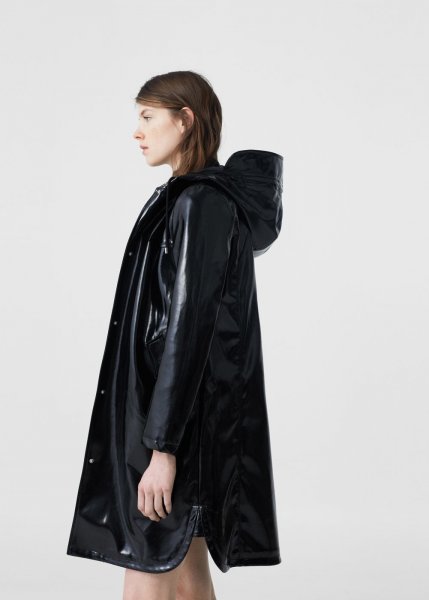 ด้วยความที่เป็นสีดำล้วนพร้อมดีไซน์ที่ดูเมโทรเซ็กชวลมากๆ ทำให้เราสามารถใส่เสื้อกันฝนไวนิลตัวนี้จาก MANGO ได้ในทุกโอกาส ใส่ไปเดินสยามเล่นตอนฝนตกก็ดูไม่ประหลาด หรือวันไหนฝนตกแล้วรีบๆ ก็คว้าชุดนี้ใส่ออกไปโล่งๆ เลยก็ไม่มีใครว่านะ