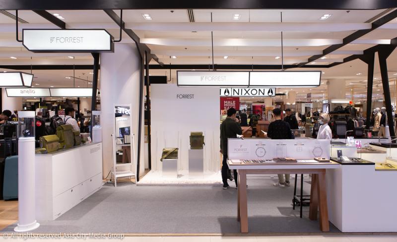 โชคดีที่วันที่เราแวะเวียนไปนั้นได้เจอกับคุณเซปษ์-กัญกาญจน์ทัด ภาษณาปฏิญญ์ฐา เจ้าของแบรนด์พอดี เลยได้นั่งคุยกันคร่าว ๆ ว่าที่จริงแล้ว FORREST ก็อยากจะมี Pop-Up Store ที่สยามพารากอนมานานแล้วเหมือนกัน แต่ด้วยโอกาสและช่วงเวลาที่ยังไม่ตรงกันเสียที จนมาถึงช่วงปลายปีข้ามมายังปีใหม่ 2019 นี้แหละที่ทางสยามพารากอนติดต่อเข้ามาพอดี FORREST จึงได้ถือกำเนิด Pop-Up Store แรกของแบรนด์ ซึ่งมาทั้งทีก็ไม่ธรรมดา เพราะยกเอาทั้งไลน์ผลิตภัณฑ์ยอดนิยมตั้งแต่เริ่มเปิดแบรนด์อย่างนาฬิกาข้อมือ และไลน์ผลิตภัณฑ์ที่น่าจับตาสุด ๆ (เพราะสวยเวอร์) อย่างกระเป๋ามานำเสนอด้วยนั่นเอง