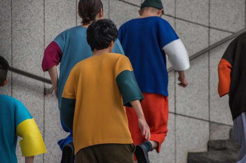 ซึ่งเจ้าคอลเลกชั่น Block Series นี้เป็นการจับคู่สีด้วยเทคนิค Color Blocking สำหรับบ้านเรา โดยสื่อถึงอิสรภาพแห่งสีสัน ซึ่งก็เข้ากับบ้านเรามาก ๆ ที่เห็นความสนุกสนานของสีสันที่ตั้งใจจับคู่สีแบบเข้ากันดีเวอร์จนอยากใส่ออกไปเดินเล่นให้ทั่วกรุงเทพฯ เลย แต่ละสี แต่ละทรง จะเสื้อแขนสั้น แขนยาว กางเกงห้าส่วน ขาทรงกว้าง หรือทรางอื่น ๆ ที่มาพร้อมกับแพตเทิร์นของเนื้อผ้าด้วยเทคนิคพิเศษเฉพาะของ Homme Plisse Issey Miyake ก็เรียกว่าเพิ่มเอกลักษณ์ให้หนุ่ม ๆ (หรือสาว ๆ ก็ใส่เท่เหมือนกันนะ) ได้ดีทีเดียวแหละ เราแอบโดนเสื้อแขนยาวคู่สีน้ำเงิน-เขียว-ส้ม กับเสื้อแขนสั้นคู่สีน้ำตาล-เขียว ไปเต็ม ๆ ขอบอกว่าคู่สีอื่นก็สวยเด็ดไม่แพ้กัน