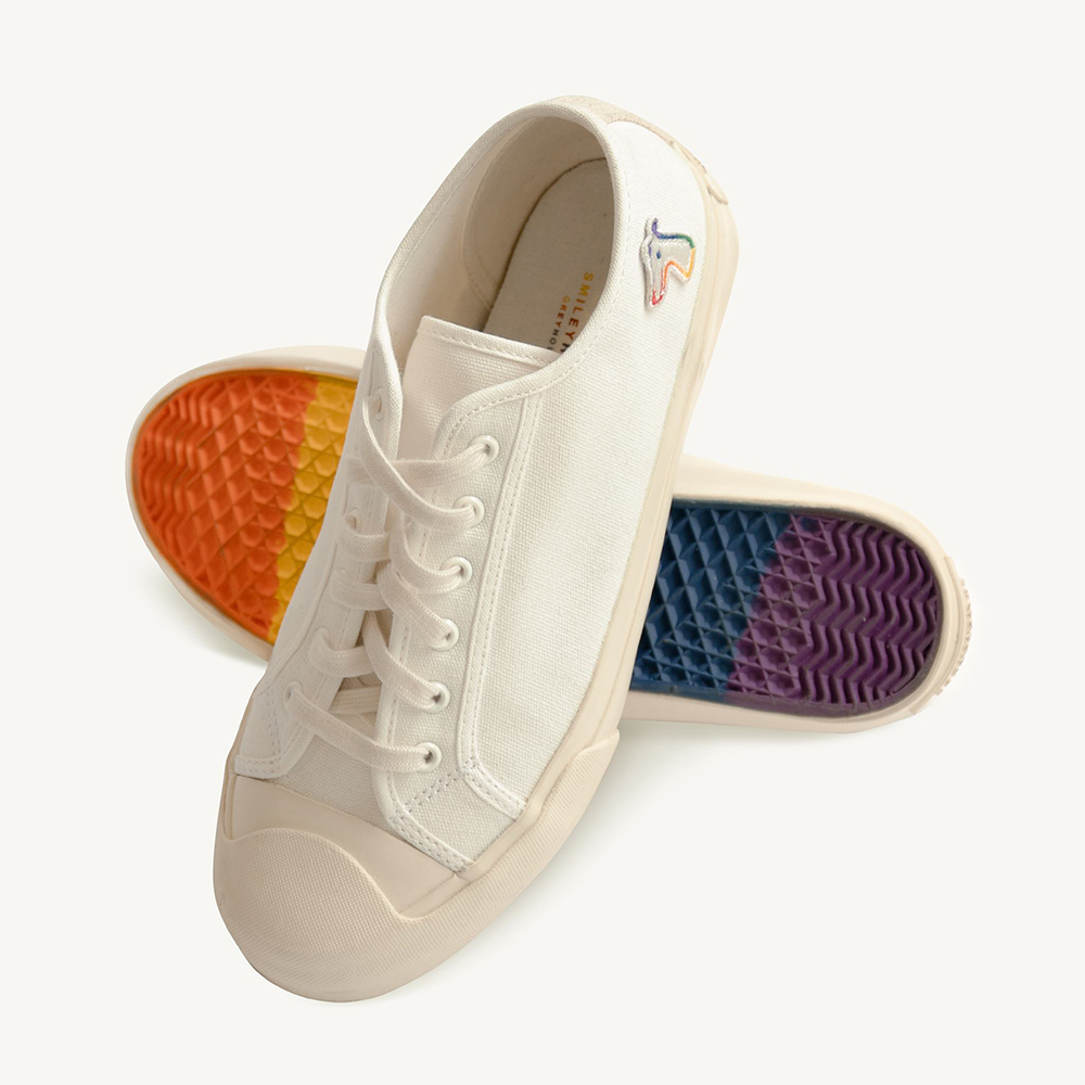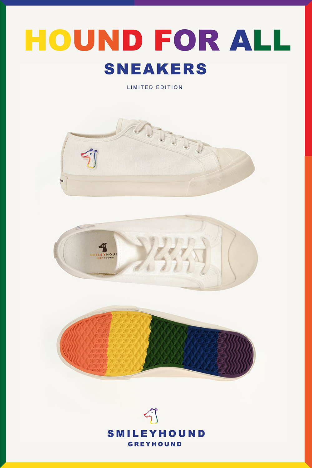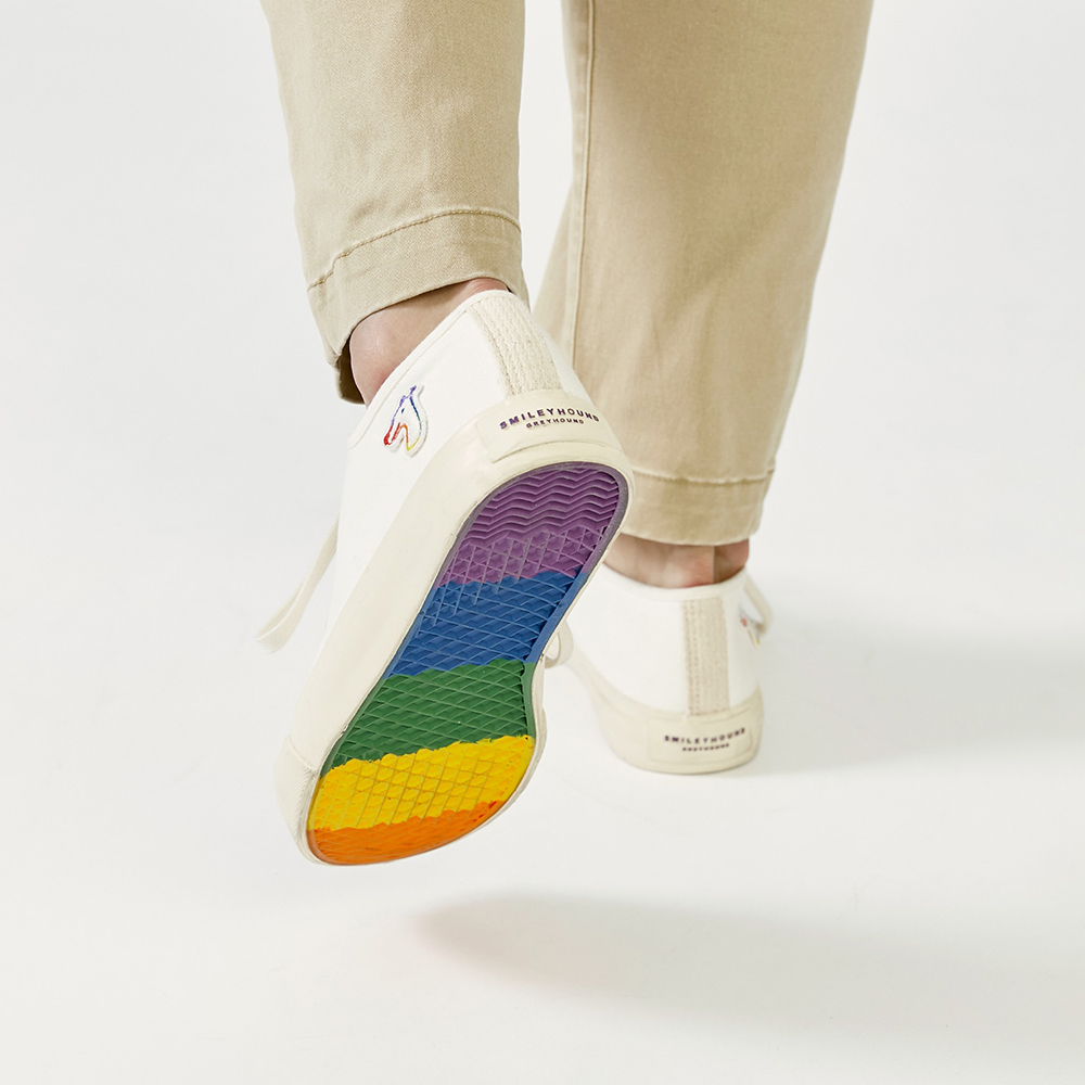 แล้วหนึ่งในไอเทมจาก Smileyhound ที่สายแฟบ้านเรากรี๊ดกันสุด ๆ ก็จะเป็นอะไรไปไม่ได้นอกจาก Smileyhound Sneakers รองเท้าผ้าใบเรียบเท่ที่ได้แรงบันดาลใจมาจากรองเท้าเทนนิสในช่วงยุค 70s โดยรุ่นแรกก็มีกิมมิกเก๋ ๆ เป็นพื้นรองเท้าสีน้ำเงินสะดุดตาสุด ๆ ซึ่งล่าสุด Smileyhound Sneakers ก็ได้กลับมาพร้อมกับรองเท้าผ้าใบรุ่นใหม่ที่พร้อมให้เหล่าคนคูลได้จับจองกัน กับ Hound For All Sneakers ลิมิเต็ดเอดิชัน ที่ยังคงกิมมิกเก๋ไก๋เป็นพื้นรองเท้าสีสดสะดุดตาเช่นเดิม