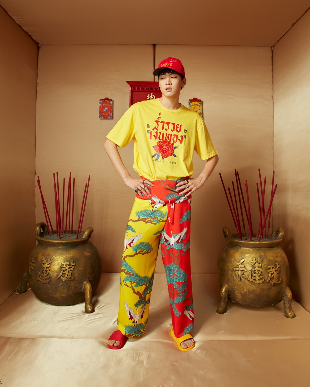 ความเก๋ถัดมาว่าด้วยคอนเซปต์ของคอลเลกชันนี้ที่ต้องการสื่อถึงวัฒนธรรมจีน ผ่านลวดลายพิมพ์บนผืนผ้าที่ให้ทั้งกลิ่นอายแบบ Modern Chinese รวมถึงสื่อความเป็นแบรนด์ ISSUE ได้แบบชัดเจน ขนาดที่มองแว้บเดียวก็รู้เลยว่าเป็นเสื้อผ้าจากทีม ISSUE Thailand ชัวร์! ที่เราชอบมากคือการมาพร้อมข้อความมงคลแบบไทย ๆ ให้เหล่าลูกครึ่งไทย-จีนได้ซื้อไปใส่วันไหว้เจ้า แถมด้วยดีไซน์ที่ใส่ได้ทั้งผู้หญิงผู้ชาย คีย์พีซหลาย ๆ ตัวมีความ Unisex และความคลาสสิกที่ไม่จำเป็นต้องใส่เฉพาะวันตรุษจีนก็ได้