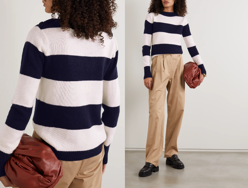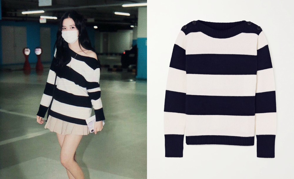 ปิดท้ายกันที่ Button-embellished striped wool and cashmere-blend sweater ของแบรนด์ Max Mara ที่มีคนเห็นจีซูใส่วันที่ออกไปประชุมงานเดี่ยว (คาดว่าน่าจะเกี่ยวกับซีรีส์ Snowdrop - 설강화) โดยเป็นเสื้อขนสัตว์เบลนด์เนื้อนุ่ม ทรงผ้าทิ้ง ๆ หน่อย เพิ่มความเก๋ด้วยดีเทลกระดุมตัวหัวไหล่ จากคอลเลกชันฤดูใบไม้ร่วง 2020 ราคา 375 ยูโร หรือประมาณ 13,500 บาท