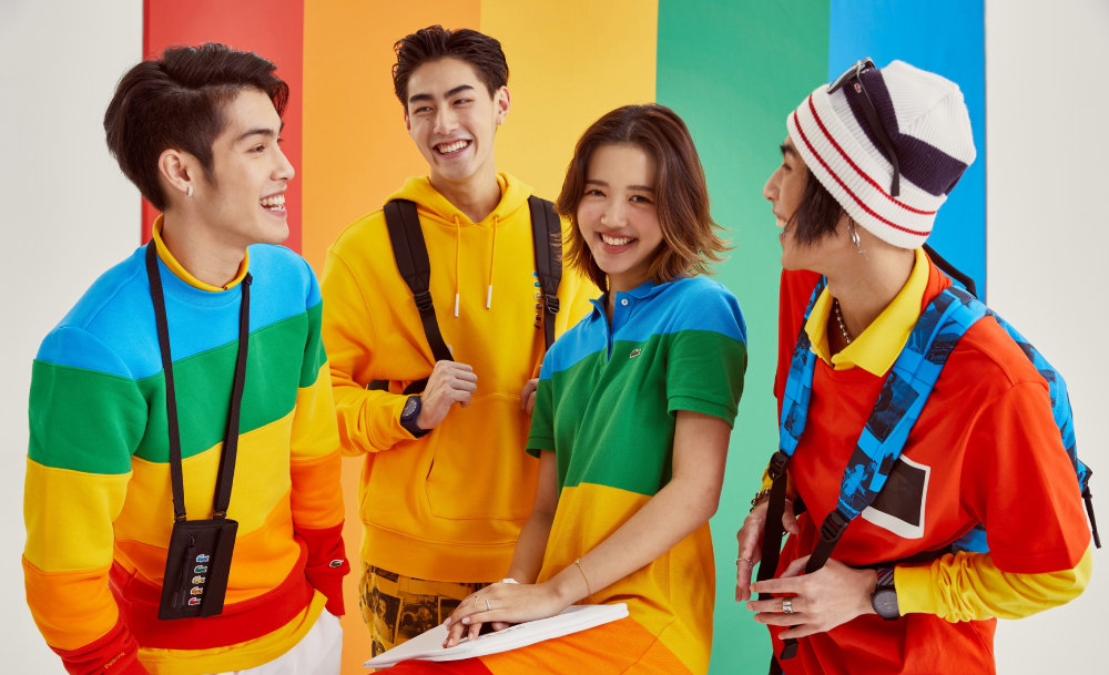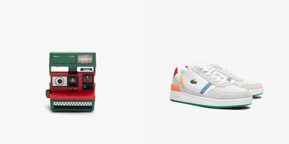 สีสันสุดฉูดฉาดจัดจ้านในคอลเลกชันนี้ได้แรงบันดาลใจมาจากโลโก้สายรุ้งของแบรนด์ Polaroid ซึ่งก็มาจากฟิล์มสีที่ผลิตเป็นครั้งแรกเมื่อปี 1963 เลยเป็นที่มาของการใช้สีฟ้า เขียว เหลือง ส้ม และแดง แบบไม่มีเคอะเขิน รวมถึงการพรินต์ภาพจาก Archive ของ Lacoste ให้เป็นลวดลายบนเสื้อผ้า ถือเป็นการผสมผสานเอกลักษณ์ของทั้งสองแบรนด์ให้ออกมาในดีไซน์ได้เป็นอย่างดี