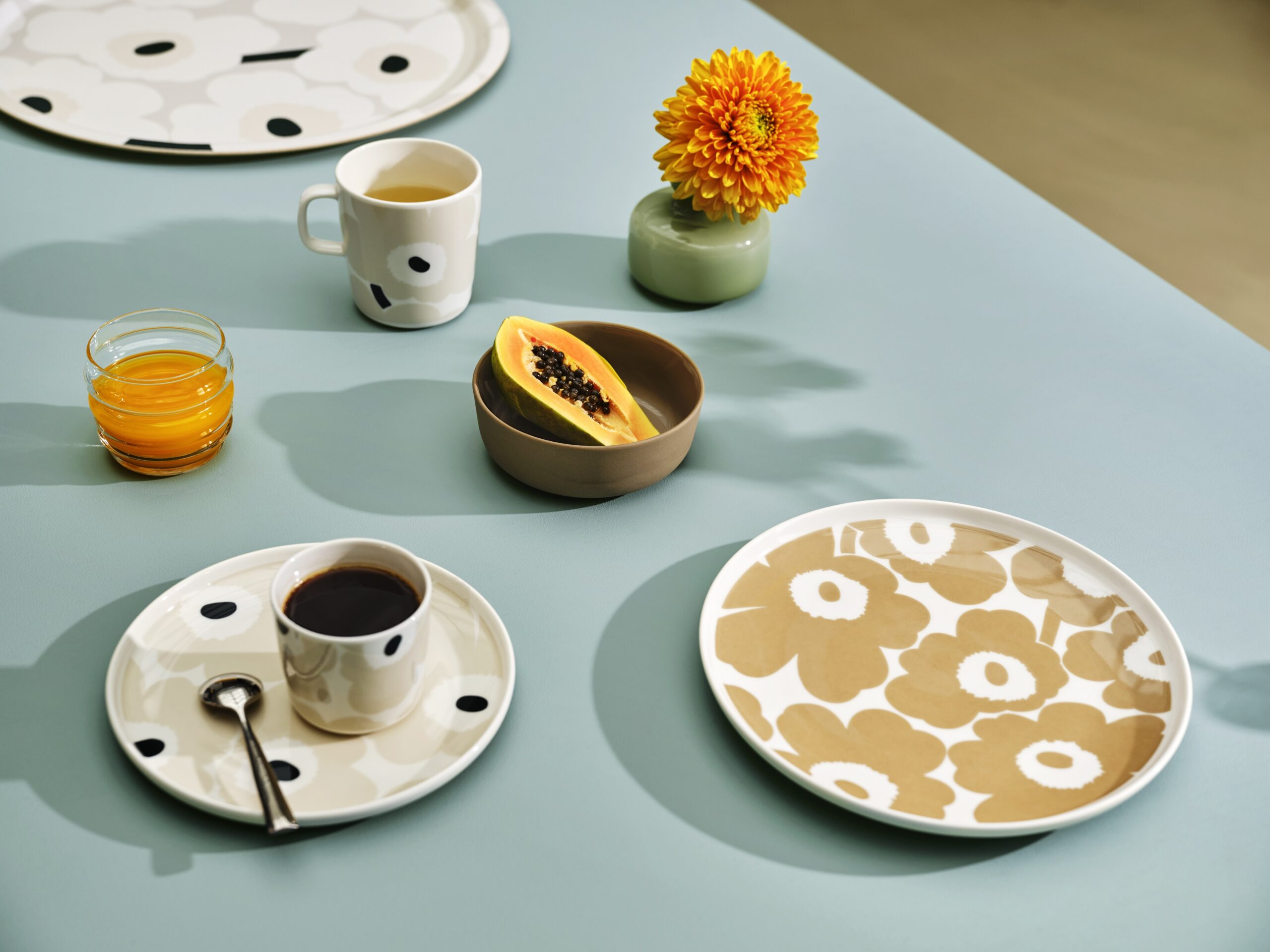 นอกเหนือจากลายพรินต์สุดแสนมินิมอลสมเป็นคอลเลกชันครบรอบ 70 ปีแล้ว สิ่งที่เราชอบมาก ๆ คือโทนสีประจำคอลเลกชันในเฉดเอิร์ทโทนที่แฝงด้วยความสดใสอย่าง สีเหลืองเลมอน ฟ้าสดใสของท้องฟ้า แดงสด และเขียวน้ำทะเล รวมถึงไอเทมพิเศษไว้แต่งบ้านจาก Marimekko Home ที่ช่วยเพิ่มความน่าสนใจให้คอลเลกชัน และทำให้ไอเทมแต่ละชิ้นกลายเป็นของแรร์ที่แฟน ๆ ควรสะสมเป็นอย่างยิ่ง