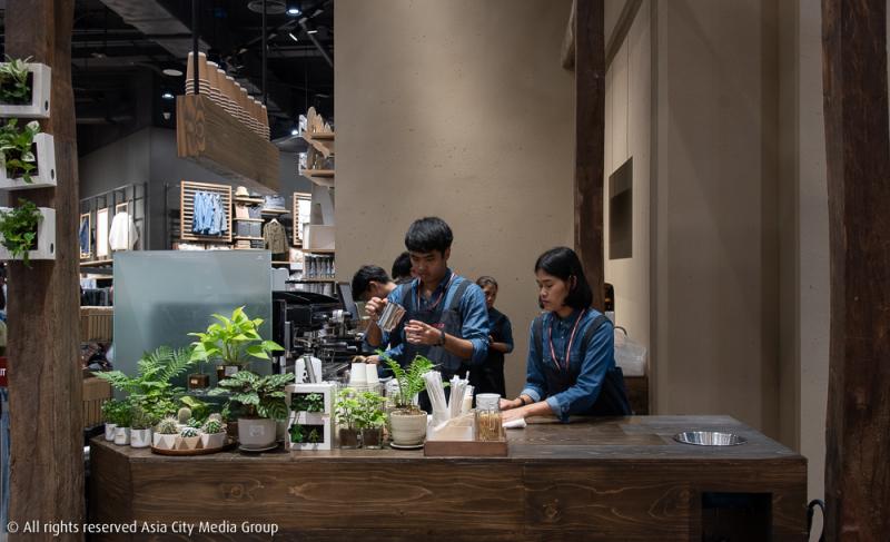 ปิดท้ายที่ความพิเศษบริเวณใจกลางของมูจิสาขานี้ กับ Coffee Corner มุมกาแฟสุดน่ารักที่ถึงจะไม่ได้มาเต็มเป็น Muji Cafe เหมือนที่ Tenjin Daimyo ในญี่ปุ่น แต่ก็พอทำให้แฟน ๆ มูจิอย่างเรากรี๊ดแตกได้แล้ว โดยที่นี่จะเลือกเสิร์ฟกาแฟจากเมล็ดของดอยตุง พร้อมเบเกอรี่สดใหม่จาก 60 Plus Bakery ซึ่งเป็นโครงการที่จัดขึ้นโดยมูลนิธิศูนย์พัฒนาและฝึกอบรมคนพิการแห่งเอเชียและแปซิฟิก (APCD)ในพระราชูปถัมภ์ สมเด็จพระเทพรัตนราชสุดาฯ สยามบรมราชกุมารี