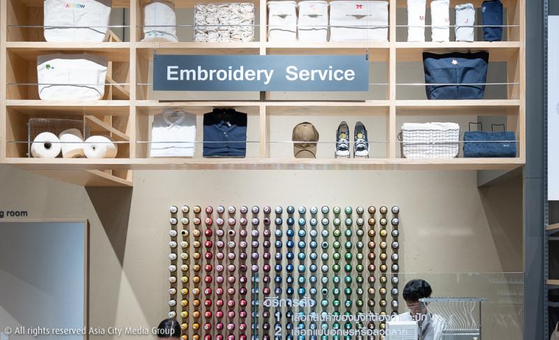 ความพิเศษของโซนเสื้อผ้าอยู่ตรงที่บริการ Embroidery Service โดยเราสามารถปักลายบนเสื้อผ้า รองเท้า หรือกระเป๋าเราได้แบบฟรี ๆ โดยจะเป็นลายปักกลิ่นอายไทยที่เป็นลายลิมิเต็ดและมีเฉพาะสาขา Samyan Mitrtown เท่านั้น! และยังไม่หมด กับ Muji Labo บริการตัดขากางเกงที่มีช่างผู้ชำนาญการบริการให้ฟรีเฉพาะที่สาขานี้เท่านั้นอีกด้วย