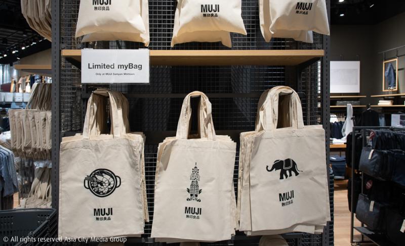 ส่วนเจ้ากระเป๋าผ้า Limited myBag (115 บาท) พร้อมลายสกรีนแบบไทย ๆ อย่างลายต้มยำกุ้ง ช้าง และยักษ์วัดโพธิ์ ก็เป็นหนึ่งในความพิเศษเฉพาะที่ MUJI Samyan Mitrtown ที่ถ้าไม่มาซื้อที่นี่ก็หาที่อื่นไม่ได้เด้อ