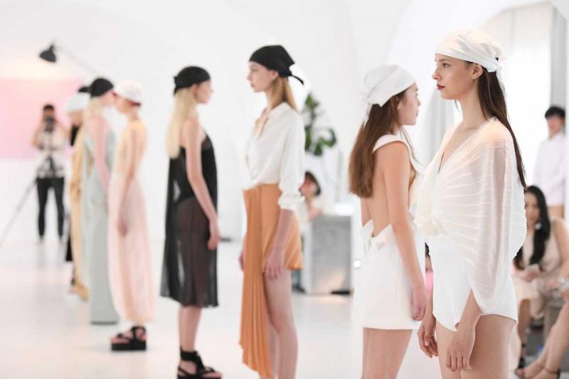 พอมาบวกรวมกับความเป็นเฟมินิสต์เท่ ๆ ในแบบฉบับผู้หญิงของ Vickteerut เลยกลายมาเป็นเสื้อผ้าที่ถูกลดทอนสีสันให้อยู่ในสีโมโนโทน เช่น ขาว ดำ เจือด้วยสีเอิร์ธโทนนิด ๆ อย่างสีเบจและสีเขียวอ่อน เบรกความเรียบร้อยของสีด้วยเทคนิคเล่นดีเทลบนเนื้อผ้าพร้อมใส่คัตติ้งเนี๊ยบ ๆ เข้าไป ไม่ว่าจะเป็น การอัดพลีทบนเนื้อผ้าแก้วออร์แกซา หรือการแต่งชายกระโปรงชุดเดรสด้วยขนนกเพื่อสร้างความรู้สึกพลิ้วไหวและเพิ่มลุคความเป็นผู้หญิงมากขึ้น