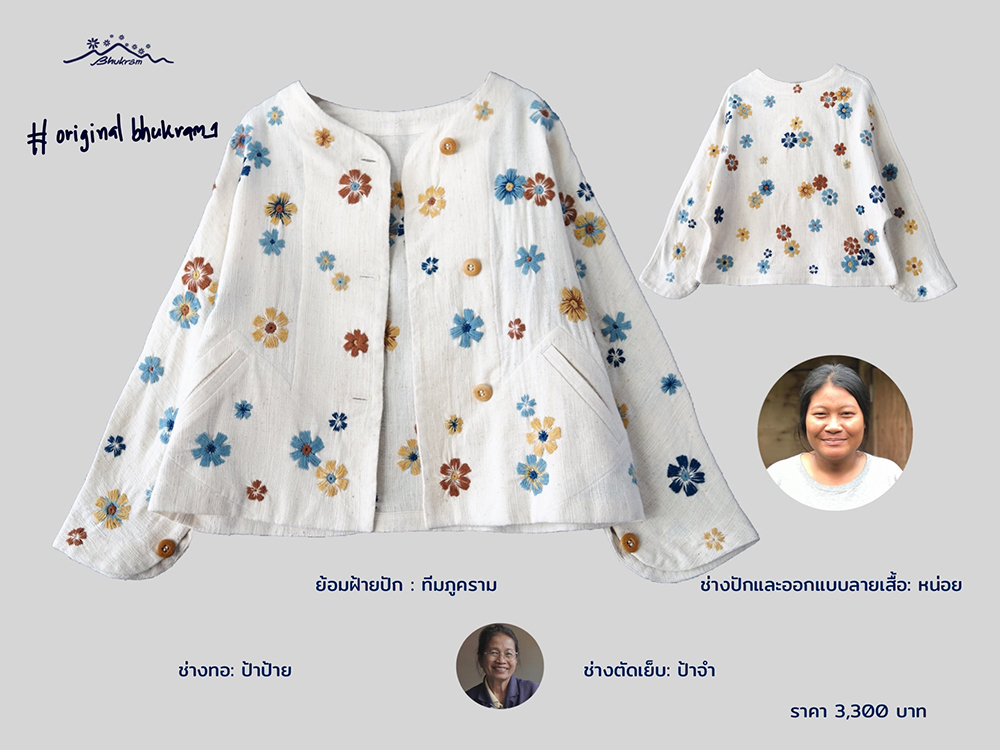 จุดเด่นของคอลเลกชันเสื้อผ้าจากภูครามอีกประการหนึ่งคือความน่ารัก มินิมอล ที่ทำให้เราลืมภาพจำเดิม ๆ เกี่ยวกับเสื้อผ้าทอที่เป็นไอเทมติดตู้เสื้อผ้าคุณแม่คุณยายที่เราจนปัญญาจะ Pull it off โดยเอกลักษณ์ของเสื้อภูครามก็คือลายปักดอกไม้ที่ได้แรงบันดาลใจมาจากธรรมชาติรอบอุทยานแห่งชาติภูพานนี่เอง นอกจากจะคิวต์ไม่ซ้ำใครแล้ว สาว ๆ ยังสามารถหยิบไอเทมของแบรนด์นี้มาแมตช์สร้างลุคเรียบ ๆ (แบบมีดีเทล) กับไอเทมอื่นที่มีอยู่แล้วได้ง่ายอีกด้วย