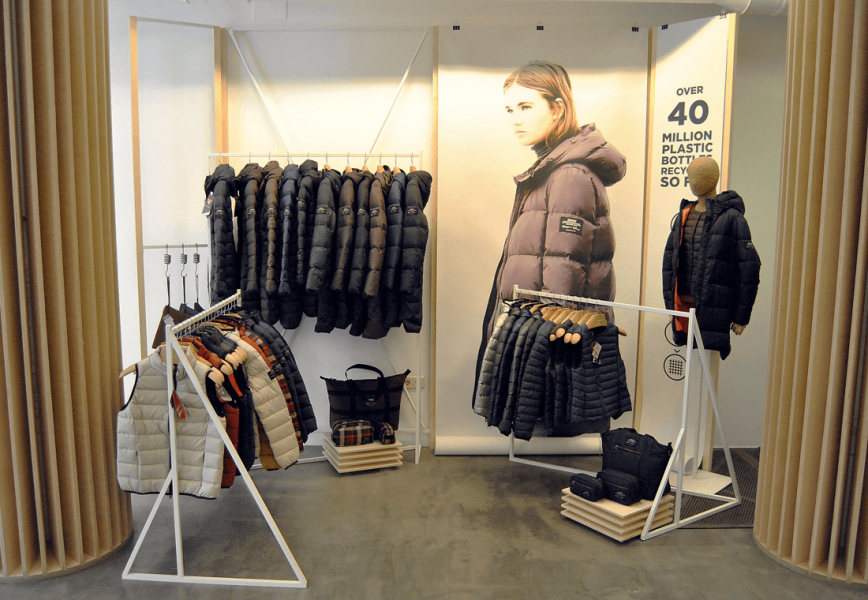 วัสดุทั้งหมดที่ถูกนำมาทำเป็นสินค้าแฟชั่นจากแบรนด์ Ecoalf ได้มาจากขยะรีไซเคิลทั้งสิ้น ทั้งขวดพลาสติกใส ตาข่ายจับปลา ผ้าเหลือใช้จากโรงงาน หรือแม้แต่ยางรถยนต์เก่าที่คนเอาไปทิ้งในทะเล แบรนด์นี้ก็จับมาทำเป็นเสื้อผ้า กระเป๋า และรองเท้าได้ทั้งนั้น ซึ่งเราไม่ได้กำลังพูดถึงการเอามาแค่บางส่วน แต่ทุกอย่างจากแบรนด์นี้ เกิดจากขยะรีไซเคิลทั้งหมด 100%
