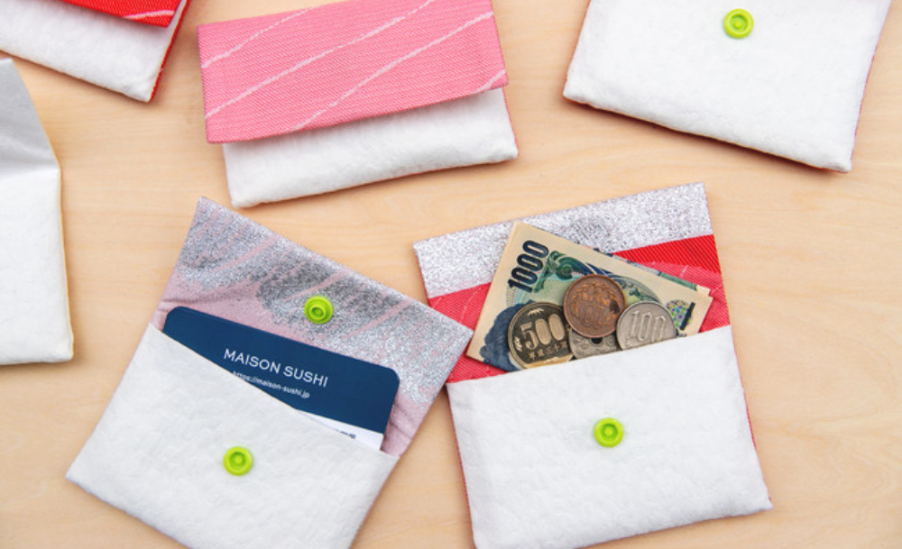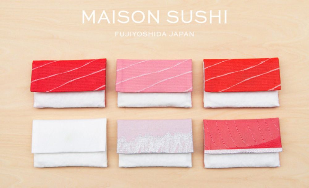แบรนด์ Maison Sushi เกิดขึ้นได้เพราะนักออกแบบสิ่งทอ ทานาเบะ โอริโมโนะ ช่วยสรรค์สร้าง ด้วยเทคนิคที่สั่งสมมาจากการผลิตเนื้อผ้าหลากหลายแบบนานหลายทศวรรษ ซึ่งไอเทมใหม่ที่ทางแบรนด์ปล่อยออกมาก็ปุ๊กปิ๊กสไตล์เรามาก ๆ เลย ทั้งกระเป๋าใส่การ์ดต่าง ๆ ใส่เศษเหรียญ เงินทอน ขนาดเหมาะมือ แถมมีกิมมิกตรงกระดุมเป็นสีเขียวซะด้วย แทนการแต้มวาซาบิปรุงรสเบา ๆ เก๋ไม่หยอกทีเดียว
