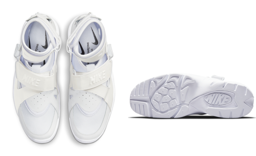 บอกเลยว่าการกลับมาแบบเต็มตัว พร้อมวางขาย คราวนี้ Nike x COMME des GARCONS HOMME PLUS Air Carnivore เติบโตจากสนีกเกอร์ต้นแบบในธีม Metal Outlaw ครั้งนั้นไปอีกขั้น โดยมาในเฉดโมโนโครม ขาว-ดำ ชัดเจน และยังคงโดดเด่นที่การผสมผสานดีเทลของการเป็นรองเท้าสนีกเกอร์กับการเป็นรองเท้าแกลดิเอเตอร์เข้าด้วยกัน ผ่านนวัตกรรมในแบบฉบับของ Nike Air Carnivore ที่เปิดตัวครั้งแรกเมื่อปี 1993 โน่น และยังคงได้รับความนิยมจนถึงทุกวันนี้
