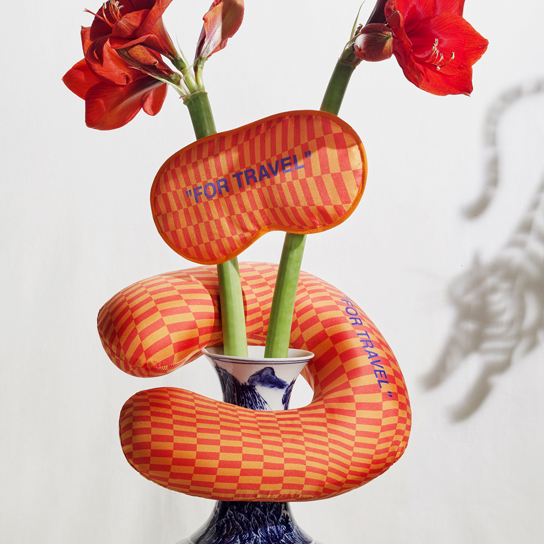 สำหรับสายแอกเซสเซอรี เขาก็มีสร้อยข้อมือสีแดงทองสัญลักษณ์ Arrow พร้อมจี้น้องเสือเสริมมงคล และพวงกุญแจ zip tie สีแดงสด พร้อมชาร์มห้อยกระเป๋ารูปเสือ ให้เลือกใช้กันด้วย ขณะที่สายวันเดอร์ลัสต์เขาก็มีไอเทมเดินทางน่าใช้อย่างหมอนรูปตัวยูและผ้าปิดตาลายตารางสีส้มแดง ห่อด้วยผ้าไหมอย่างดี พร้อมข้อความสั้น ๆ ง่ายๆ แต่เป็นแอตติจูด Off-White มาก ๆ อย่าง 'FOR TRAVEL' สกรีนไว้อย่างโดดเด่น ให้ได้เลือกจับจองไปอีก