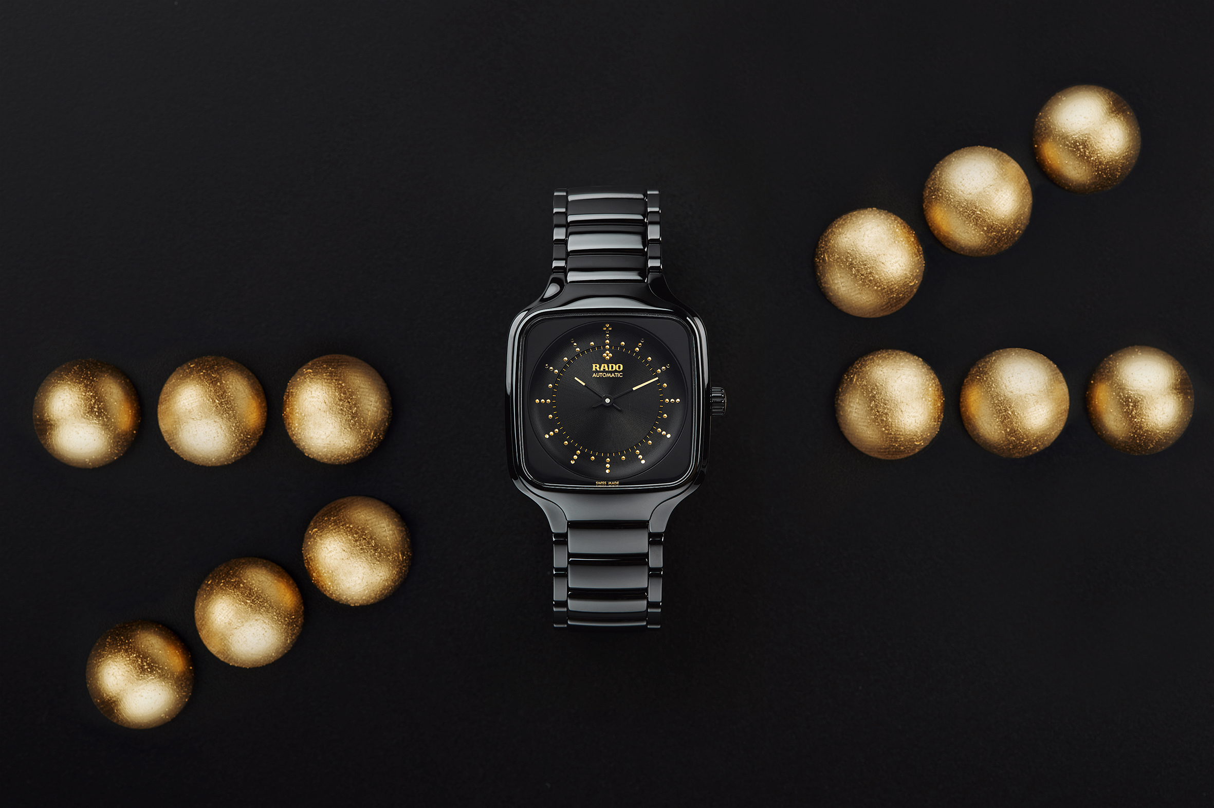 ตามมาด้วย Rado True Square เรือนพิเศษอีกตัวจากตระกูล True ที่ครั้งนี้ได้นักออกแบบกราฟิกชาวจีน Yuan Youmin มาดีไซน์รูปแบบหน้าปัดที่ได้รับแรงบันดาลใจมาจากตาชั่งโบราณของจีนที่มีประวัติความเป็นมายาวนานกว่า 2,000 ปี โดยมีการนำเอาถาดตาชั่งอุปกรณ์ถ่วงน้ำหนักแบบโบราณ และสีทองเหลืองของตัวตาชั่งมาเป็นแรงบันดาลใจหลักของมาสเตอร์พีซชิ้นนี้