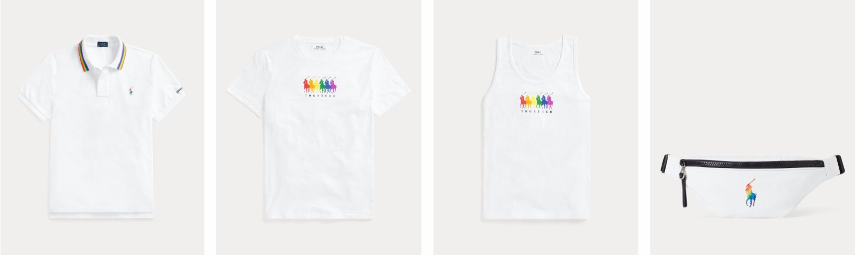 คอลเลกชันนี้ของ Ralph Lauren นอกจากจะสมทบทุนกำไรส่วนหนึ่งให้กับ Stonewall Community Foundation ที่สนับสนุนผู้มีความหลากหลายทางเพศทั่วโลกแล้ว ยังเน้นย้ำถึงดีไซน์ที่ก้าวข้ามเส้นแบ่งทางเพศสภาพ โดยทุกไอเทมจะเป็นเสื้อผ้าและแอกเซสเซอรีที่ไร้เพศ ใส่ได้ทุกคน ชูจุดเด่นที่ความเรียบโก้ของสีขาวกับโลโก้สุดไอคอนิกของทางแบรนด์ที่มาในสีรุ้งสดใส เครื่องหมายของความหลากหลายทางเพศ