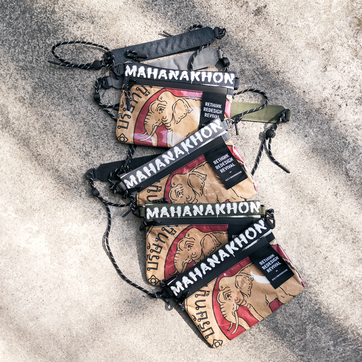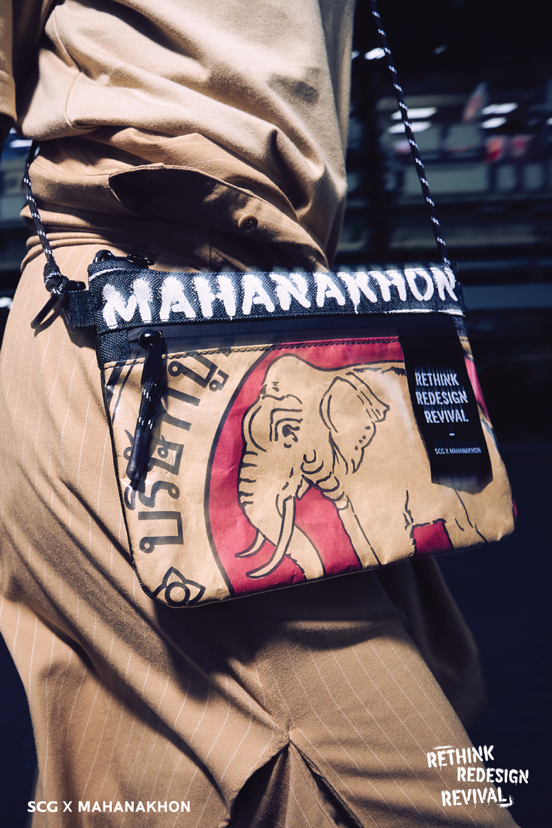 ถือเป็นโปรเจกต์ Upcycling ที่เราเห็นปุ๊บแล้วอยากได้ปั๊บเลย สำหรับความร่วมมือระหว่าง SCG กับ MAHANAKHON แบรนด์สตรีตแวร์สัญชาติไทย ที่ออกแบบคอลเลกชันพิเศษมาในคอนเซปต์ RETHINK REDESIGN REVIVAL นำถุงปูนซีเมนต์ที่รอการทำลายมา Upcycling ทำเป็นไอเทมสวมใส่และพกพา ว่าง่าย ๆ คือเขามุ่งเน้นที่จะลดปริมาณขยะ พร้อมกับนำเสนอความเป็นไทยในแอกเซสเซอรีแบบสากลด้วย