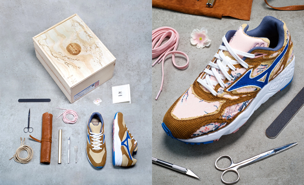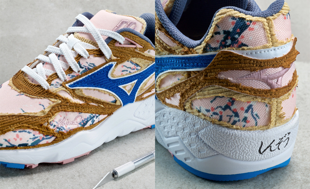 กิมมิกสุดเก๋ของเจ้า Shinzo x Mizuno Contender นี้ก็คือ เมื่อเราเปิดกล่องรองเท้าที่มาในรูปแบบของกล่องไม้ฟีลนิฮงจินสุด ๆ เราจะเจอกับรองเท้าคู่เท่พร้อมกับชุดอุปกรณ์เครื่องมือสำหรับทำการคัสตอม ซึ่งมาถึงจุดนี้เราก็จะต้องตัดสินใจแล้วว่าจะคงรูปและสีเดิมของรองเท้า หรือจะใช้อุปกรณ์ที่เขาให้มาสกัดเลเยอร์ของรองเท้าออก เพื่อเผยให้เห็นลายพิมพ์สีหวานรับฤดูซากุระบานที่ซ่อนอยู่ข้างใต้