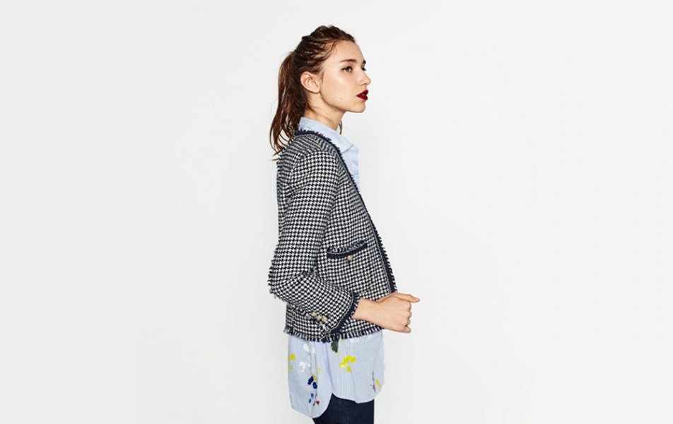 แต่ถ้าใครอยากได้แจ็กเกตแบบเป็นทางการขึ้นมาหน่อย แต่ยังไม่ถึงขั้นเสื้อสูทหรือเสื้อคลุม Blazer เราว่าเสื้อ Printed Jacket จาก Zara ก็เป็นอีกตัวเลือกที่น่าสนใจ ได้ทั้งลุคที่ดูเป็น Working Woman แต่ไม่ซีเรียสเกินไปกับลายตารางเล็กๆ ทั่วตัว เพิ่มความชิคอีกนิดด้วยปลายแขนและปลายเสื้อแบบกรุยกรายเล็กน้อย ใส่ไปทำงานก็ได้ ใส่ไปแฮงค์เอ้าท์ก็ดี
