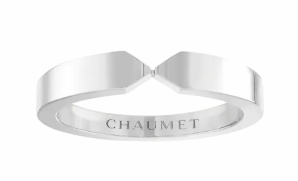 ที่ดัลมีสวมนั้นเป็นแหวนแพลตินัม Triomphe de Chaumet กว้าง 3.5 มม. ที่สามารถเลือกเป็นแหวนพิงก์โกลด์หรือประดับเพชรได้ ตามแต่สไตล์ของคู่บ่าวสาว ซึ่งจริง ๆ แล้วแบรนด์นี้เขาโดดเด่นมานานเรื่องแหวนทรงมงกุฎและเทียราประดับเพชรแบบต่าง ๆ พอมาจับสไตล์มินิมอลและโมเดิร์นหน่อย มันกลับเวิร์กและว้าวไปอีกแบบ แถมยังเหมาะกับความเป็นสาวสตาร์ตอัปอย่างดัลมีไปอีก
