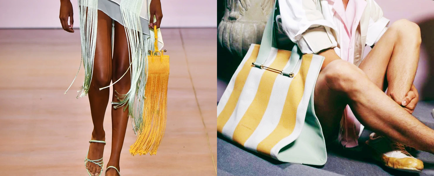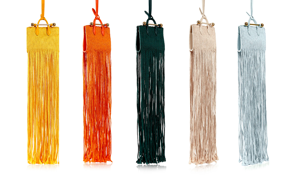 ต่อกันที่รุ่นที่เน้นดีเทลแบบโบฮีเมียน แล้วมาทีมาแบบปังสุด ๆ คือ Miniature Fringe Tote ซึ่งก็ 'ฟรินจ์' ตามชื่ออีกนั่นแหละ แต่มันเก๋ตรงฟรินจ์นี้ยาวเป็นหางเลยน่ะสิ ถึงเราจะมั่นใจว่าไซซ์ 1.8 x 3.9 x 3.1 นิ้ว นี่มันจะใส่อะไรแทบไม่ได้เลยก็เถอะ แต่คะแนนความชิคคือเต็มเท่าไหร่ก็ไม่หักจริง ๆ แล้วนอกจากจะมีสีเบสของคอลเลกชันอย่าง มินต์ / เหลือง / ครีม แล้ว เขายังมีสีส้ม ฟ้าอ่อน และเขียวเข้ม ซึ่งสีหลังสุดนี่แทบจะเป็นสีเมนของแบรนด์นี้ไปแล้ว