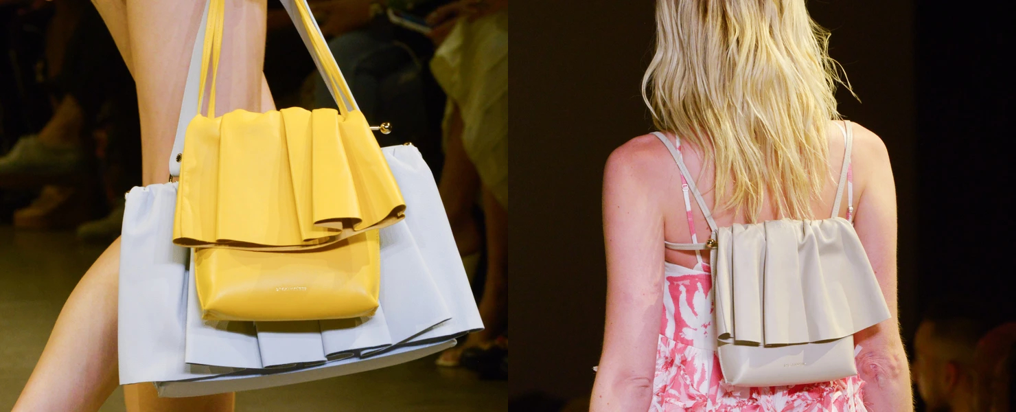 เมื่อได้ 2 แบรนด์คอนเทมฯ มาเจอกันแบบนี้ กระเป๋าไลน์พิเศษนี้เลยจะออกมาธรรมดาไม่ได้ กลายเป็น 3 รุ่น 3 แบบ ที่ทั้งขี้เล่น มีสีสัน และโอ่อ่าในตัว โดยจุดเด่นของแต่ละรุ่นนั้นอยู่ตรงซิลลูเอตต์ ดีเทล และการใช้งาน เริ่มต้นกันที่รุ่น Ruffle Crossbody ที่เลือกสะพายได้หลายแบบ แต่จุดดึงดูดสายตาอยู่ที่ 'รัฟเฟิล' ตามชื่อรุ่นเลยจ้ะ ออกมาเป็นกระเป๋ามีหน้าม้าดัดลอนเฉย น่ารักด้วย หรูหราด้วย แถมสีสันก็ปุ๊กปิ๊กไปหมด ตั้งแต่สีเขียวมินต์ เหลืองสด และครีมซีดัม ซึ่งจะเป็นเฉดเฉพาะของกระเป๋าคอลเลกชัน Xu Zhi เท่านั้น