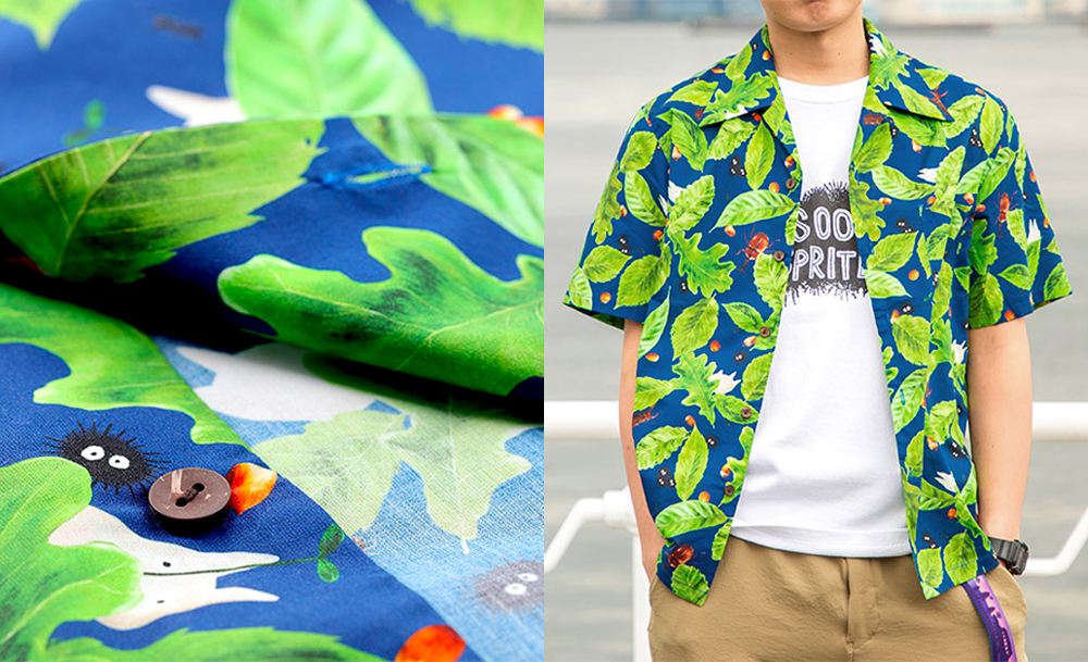 แน่นอนว่านี่ไม่ใช่คอลเลกชันเสื้อผ้าแรกของ GBL แต่ที่น่าสนใจคือคอลเลกชันล่าสุดที่ทางแบรนด์เลือกมาปล่อยวางจำหน่ายเป็นเซตแรกในช่วงที่หน้าร้าน GBL Miyashita Park เปิดทำการเป็นสไตล์ที่เหมาะกับซัมเมอร์และประเทศเขตร้อนแบบบ้านเรามาก ๆ ใครจะไปคิดว่าเสื้อฮาวายจะไปได้ดีกับลวดลายแบบจิบลิขนาดนี้ ซึ่งลายผ้าที่นำมาตัดเย็บไอเทมแฟชั่นที่เราต้องมีเซตนี้ มีทั้งลายใบโอ๊กจากเรื่อง My Neighbor Totoro อนิเมะสุดคลาสสิกปี 1988 โดดเด่นที่สีเขียวสดตัดกับพื้นหลังสีน้ำเงิน ถือเป็นแพตเทิร์นที่จัดจ้านไม่ซ้ำใครในสไตล์จิบลิเอง