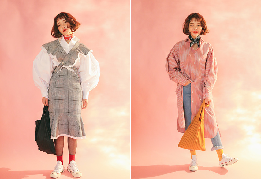 ความดีงามอีกอย่างคือเราจะสนุกกับการหยิบชิ้นนู้นมาใส่ทับชิ้นนี้ และได้มิกซ์แอนด์แมทช์มากกว่าเดิม เพราะมีไอเทมให้เลือกหลายชิ้นตั้งแต่หัวจรดเท้า เช่น เสื้อโอเวอร์ไซส์แบบไหล่ตก สเวตเตอร์ เสื้อเชิ้ต กระโปรงยีนส์ กระโปรง-กางเกง เดรส ผ้าพันคอ หมวก ฯลฯ