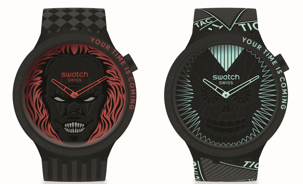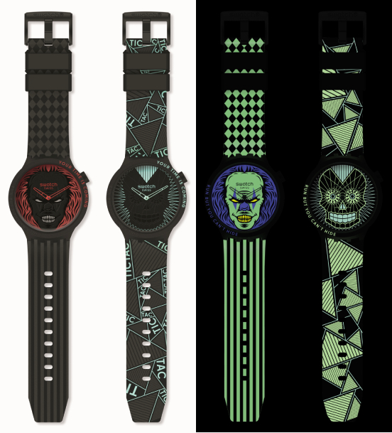 ขึ้นชื่อว่าเป็น SWATCH (หนึ่งในแบรนด์ที่ปล่อยคอลเลกชันบ่อยที่สุด) ทั้งที พอถึงเทศกาลวันปล่อยผีประจำปีอย่างฮาโลวีน เขาก็ไม่พลาดที่จะปล่อยโมเดลฮิต BIG BOLD ในธีม Halloween Capsule Collection ออกมาเอาใจสายนิยมความ Horror โดดเด่นไม่ซ้ำใครตรงตัวเรือนและสายสีดำบวกกับ Ghost Glow Effect หรือก็คือเทคนิคการพิมพ์ลายสีฟลูออเรสเซนต์เรืองแสงในที่มืด สะสมพลังงานจากแสงอาทิตย์ตอนกลางวัน เพื่อให้สามารถเรืองแสงได้ตอนกลางคืน