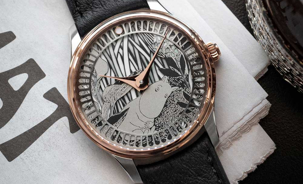 ความพิเศษของดีไซน์ที่ Sarpaneva ออกแบบไว้ก็คือ หน้าปัด 3 เลเยอร์ ที่มาพร้อมกับพรายน้ำเรืองแสง Swiss Super-Luminova® และลงน้ำลึกได้ถึง 100 เมตร แรงบันดาลใจการดีไซน์มาจากภาพลายเส้นในหนังสือ Moominsummer Madness ที่ผู้ให้กำเนิด Moomin อย่าง Tove Jansson เคยวาดเอาไว้เมื่อปี 1954 ซึ่งเขาก็ต่อยอดจากลายเส้นภาพสีขาวดำในหนังสือ แล้วเพิ่มสีสันให้กับ Moomin ที่ย้ายจากในหน้ากระดาษ มาอยู่บนข้อมือของเราได้อย่างลงตัว