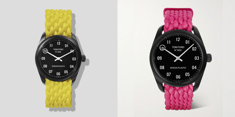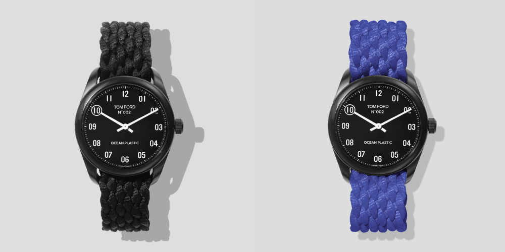 Tom Ford Ocean Plastic เป็นนาฬิกาโมเดล 002 หน้าปัด 40 มม. ที่ทางแบรนด์มีขายอยู่เป็นปกติ แต่เพิ่มความพิเศษตรงที่รุ่นนี้ทำจากขยะพลาสติกในทะเล 100% และสเตนเลสสตีล ทั้งเคสทั้งสาย เลือกใส่ได้ทั้งสีเรียบ ๆ อย่าง ดำ น้ำเงิน หรือจะสดใสไปเลยอย่าง เหลือง ชมพู ก็ย่อมได้ (สีชมพูวางขายทางเว็บไซต์แฟชั่น MR PORTER เท่านั้น) ส่วนแพ็กเกจที่มากับนาฬิกาก็ทำจากพลาสติกและกระดาษรีไซเคิลด้วยเช่นกัน