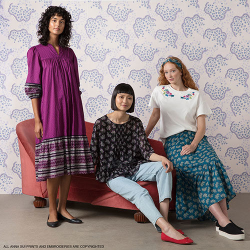 ด้วยความหลงใหลในรูปแบบการผสมผสานวัฒนธรรมในมหานครนิวยอร์ก งานของ Anna Sui เลยเปี่ยมไปด้วยความหลากหลายในการออกแบบ พร้อมทั้งหยิบจับเอาเทคนิคทั้งด้านการถ่ายภาพ แฟชั่น ศิลปะ และดนตรีจากความชอบของตัวเองมาใส่ไว้ในงานดีไซน์ได้อย่างมีคาแรกเตอร์พิเศษเฉพาะตัว คอลเลกชันใหม่ที่ทำร่วมกับยูนิโคล่ในครั้งนี้ เราเลยจะได้เห็นทั้งดีไซน์กึ่งวินเทจที่เป็นเหมือนซิกเนเจอร์ของป้าแอนนาเขาอยู่แล้ว พร้อมทั้งกลิ่นอายจากดนตรีแนวร็อกแอนด์โรลและความอิสระสไตล์ฮิปปี้ที่ผสมผสานลงบนเสื้อผ้าได้อย่างน่ารักน่าหยิก บางตัวเห็นแล้วก็นึกถึงเสื้อผ้าของเหล่าบุปผาชนอเมริกันในยุค 60s อยู่ไม่น้อย