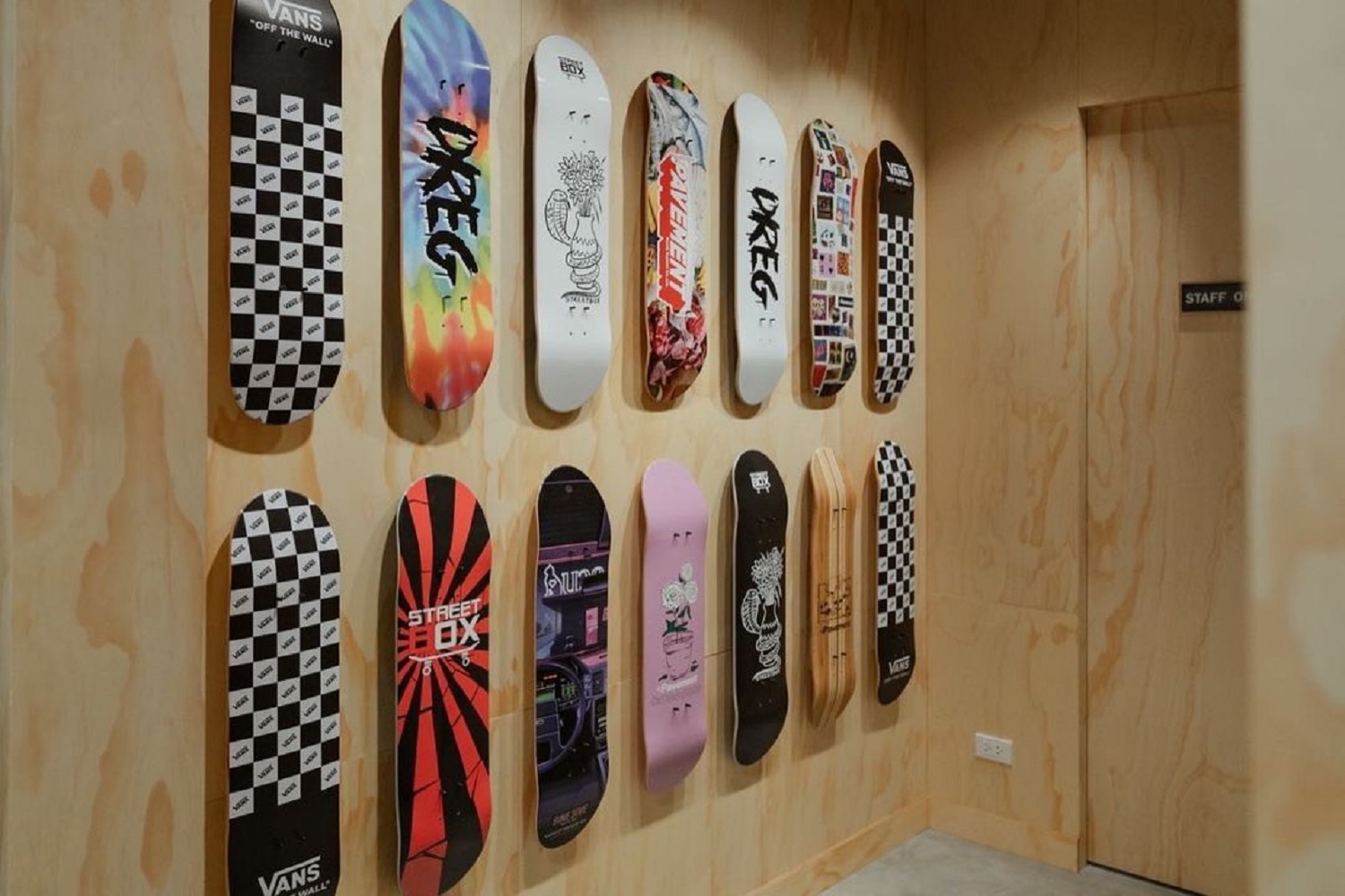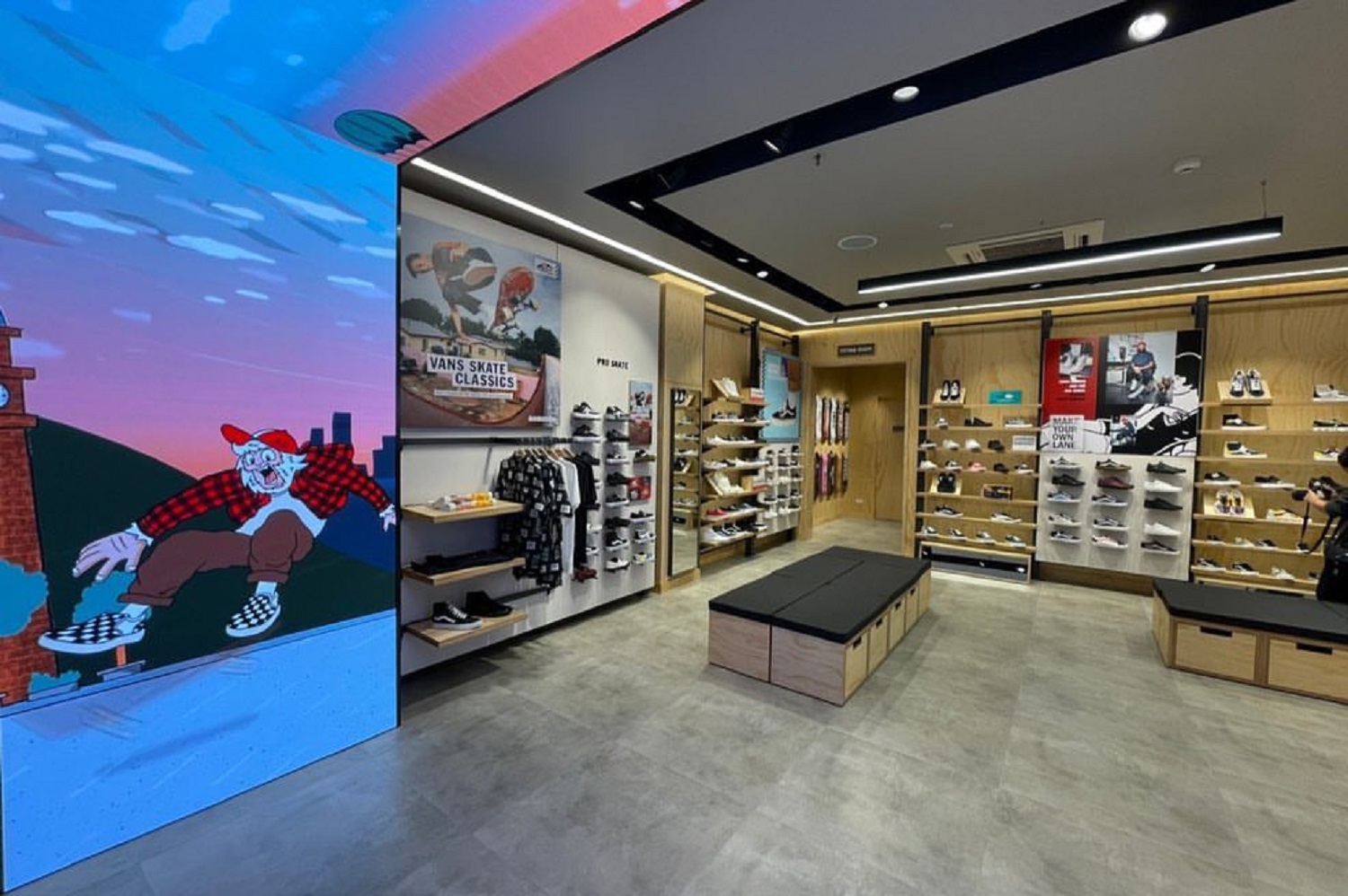ความเจ๋งสุดท้ายของ New Vans Concept Store คือการแอบซ่อนแรงบันดาลใจผ่านผนังและเสาที่สร้างจากจอมัลติมีเดียที่โอกาสให้อาร์ตติสต์ไทยได้โชว์ผลงานศิลปะ อย่างในช่วงเปิดร้านนี้ ทาง Vans ก็ได้เชิญ POORBOY หรือ ต้น เกษมวิทย์ ชวีวัฒน์ ศิลปินสายสตรีตอาร์ตเจ้าของคาแรกเตอร์เจ้าลิงขนฟูสีขาวที่คุ้นตานักสะสมงานศิลปะหลาย ๆ คน มาสร้างความเซอร์ไพรส์ให้คอนเซปต์สโตร์แห่งนี้น่าเดินมากกว่าเดิมอีกหลายเท่าตัว