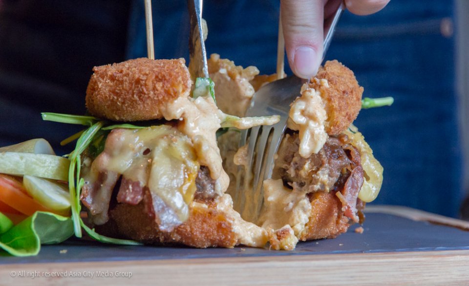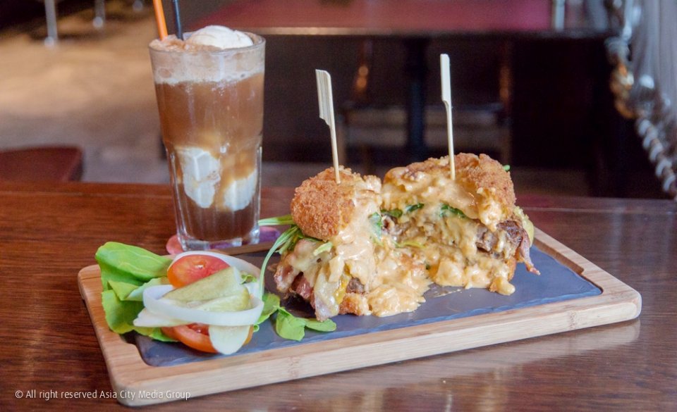 ยิ่งตอนนี้ถือว่ามีเหตุผลดีๆ ที่ทำให้เรากลับไปเยี่ยม 25 Degrees อีกเมื่อทางร้านออกเบอร์เกอร์ตัวใหม่มานั่นคือ Cheesy Mac Attack (350 บาท) ที่จัดเต็มเรื่องชีส เพราะตัวขนมปังถูกแปลงร่างให้เป็น mac n’ cheese ที่กักเก็บความเยิ้มของมักกะโรนีชีสไว้ด้านในพร้อมละลายทันทีที่เรากัดลงไปคำแรกพร้อมกับแพตตี้เนื้อเซอร์ลอยฉ่ำๆ ยิ่งได้กินกับเครื่องดื่มอย่าง Root Beer Float ที่เสิร์ฟพร้อมกับไอศกรีมวนิลาจะเพิ่มอรรถรสขึ้นไปอีก